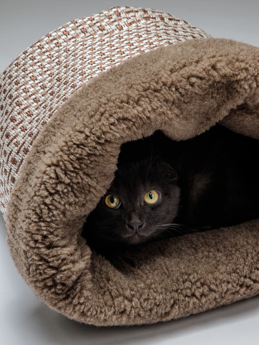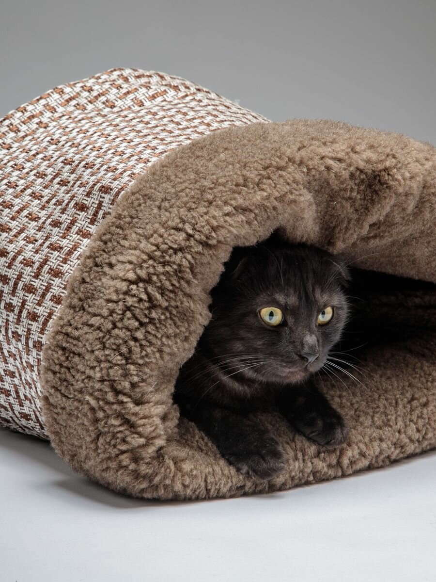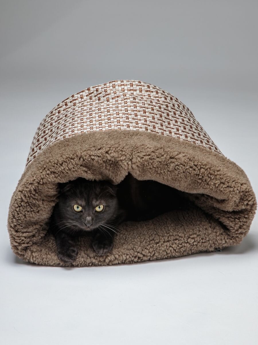 Домик для кошек и собак Пятница "Нора с овчиной", пятница 35*45*35 см, коричневый мех и рогожка интересное: