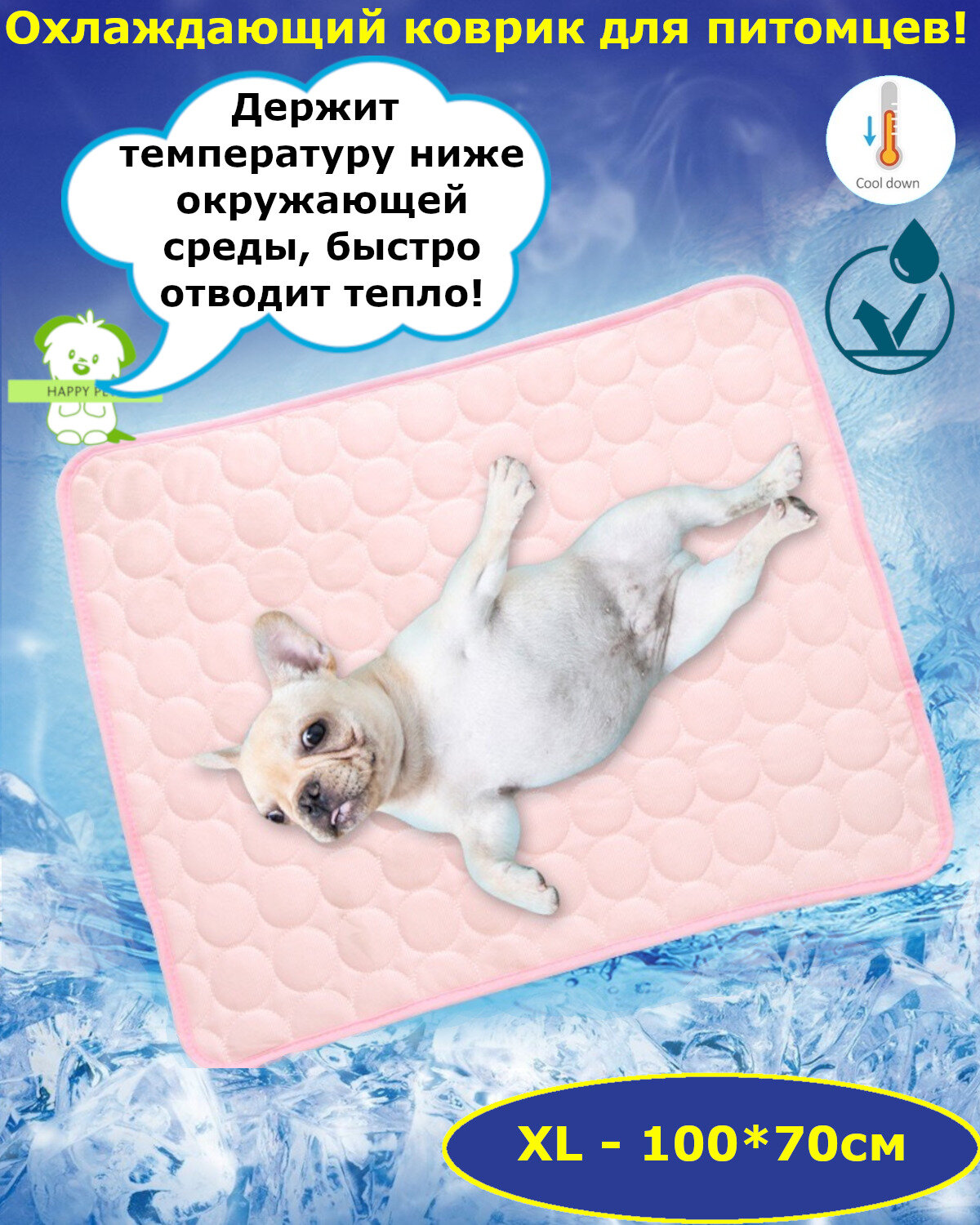 Охлаждающий коврик для собак и кошек, Синий XL, для животных