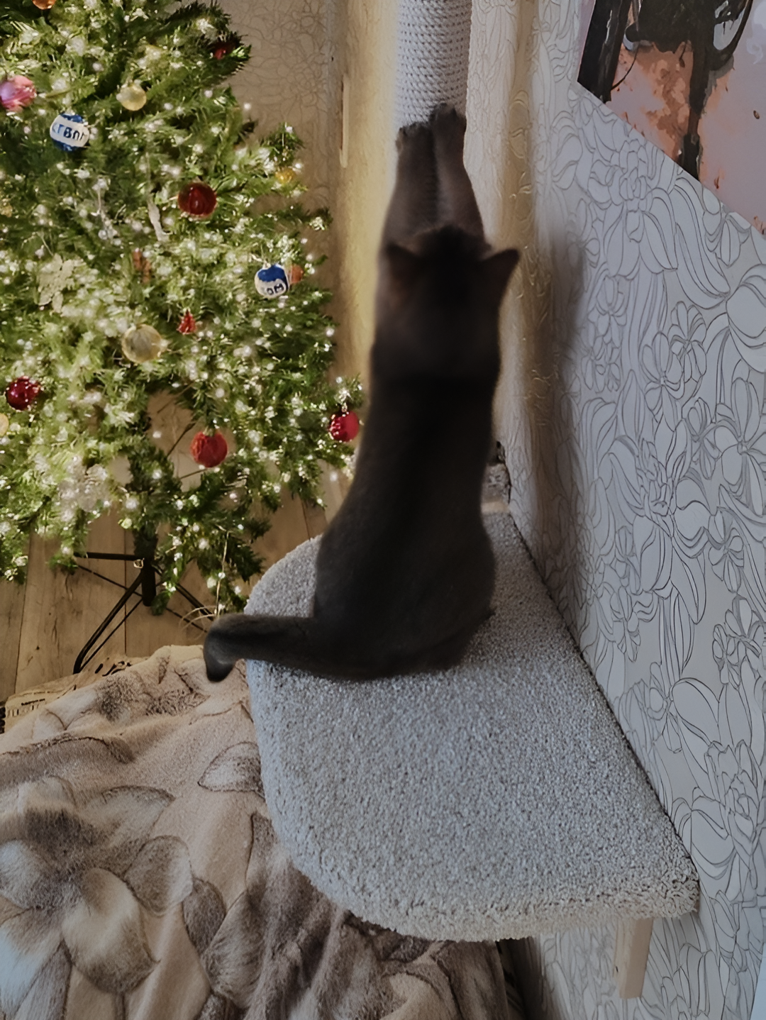 Лежанка для кошек, Моя Котя, настенная, без бортика, ковролин голубой