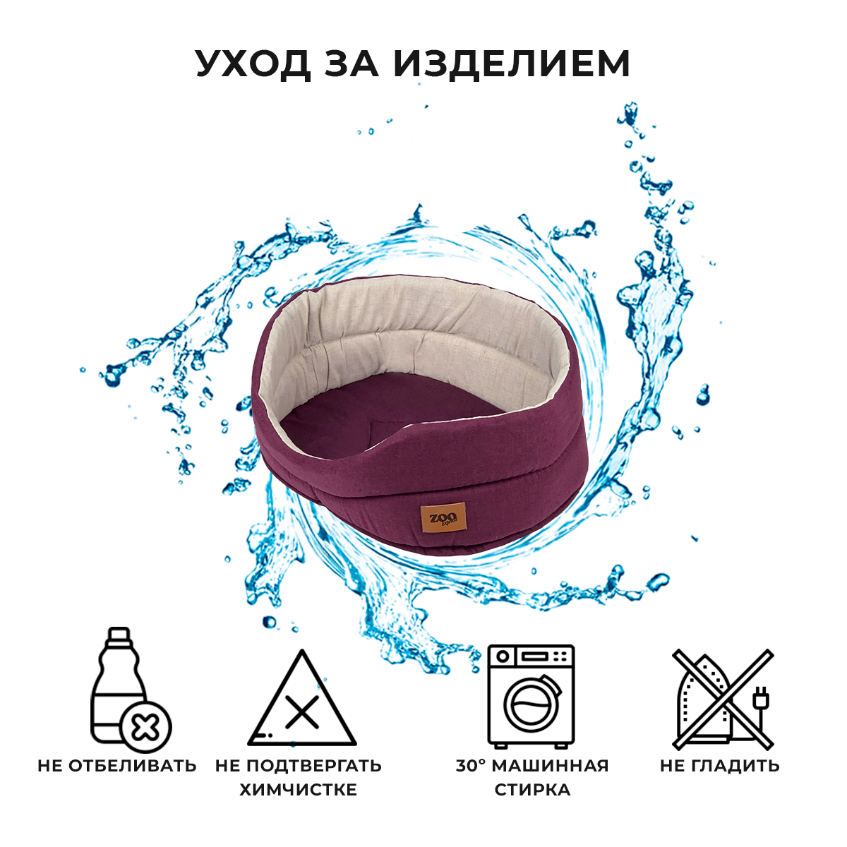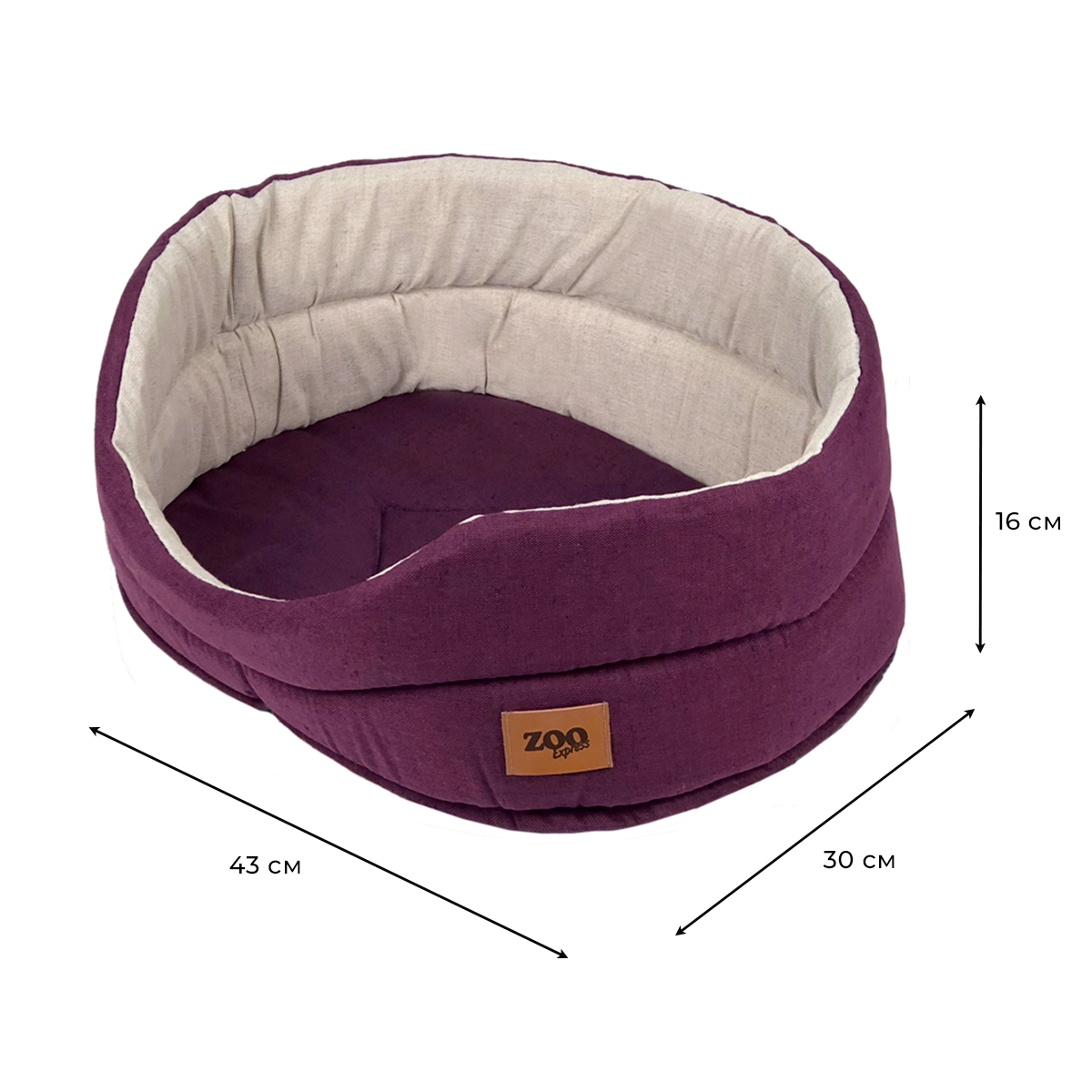 Лежанка для собак и кошек ZOOexpress "Овальный" Эколен №1, 40х27х16 см, баклажановый