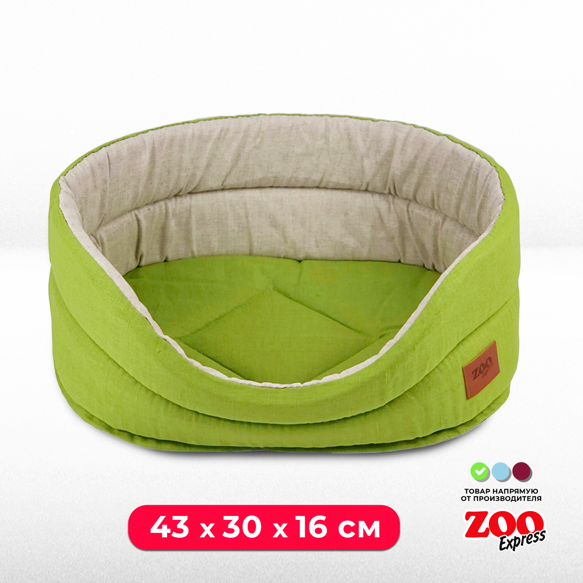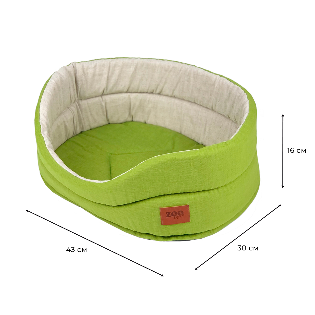 Лежак для собак и кошек ZOOexpress "Овальный" Эколен №1, 40х27х16 см, зеленый