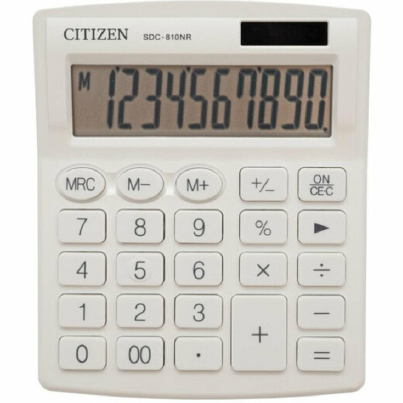 Citizen Калькулятор настольный Citizen "SDC810NR", 10-разрядный, 127 х 105 х 21 мм, двойное питание, белый
