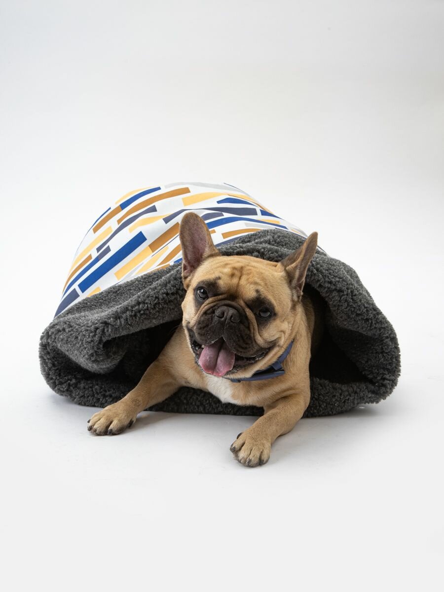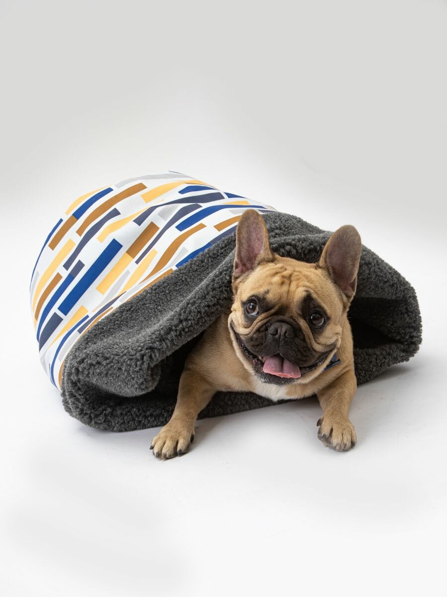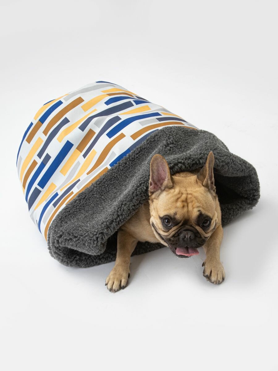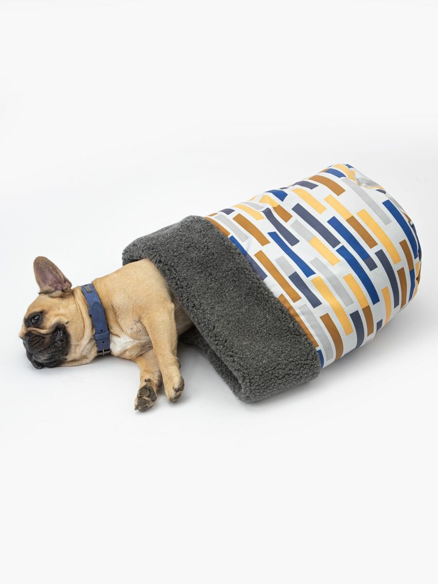 Домик для кошек и собак "Нора с овчиной", Пятница, 38*50*38 см, мебельная ткань с принтом и коричневый мех