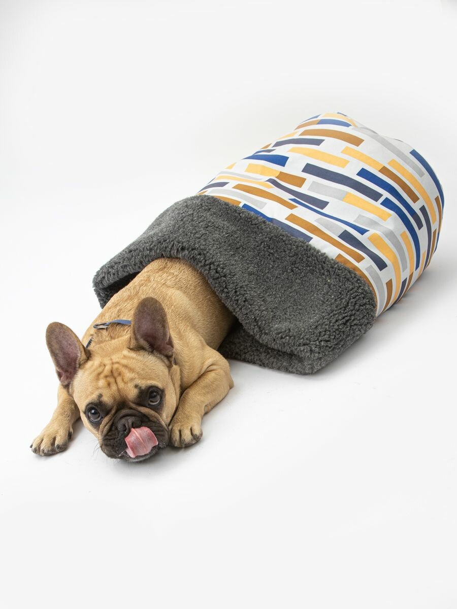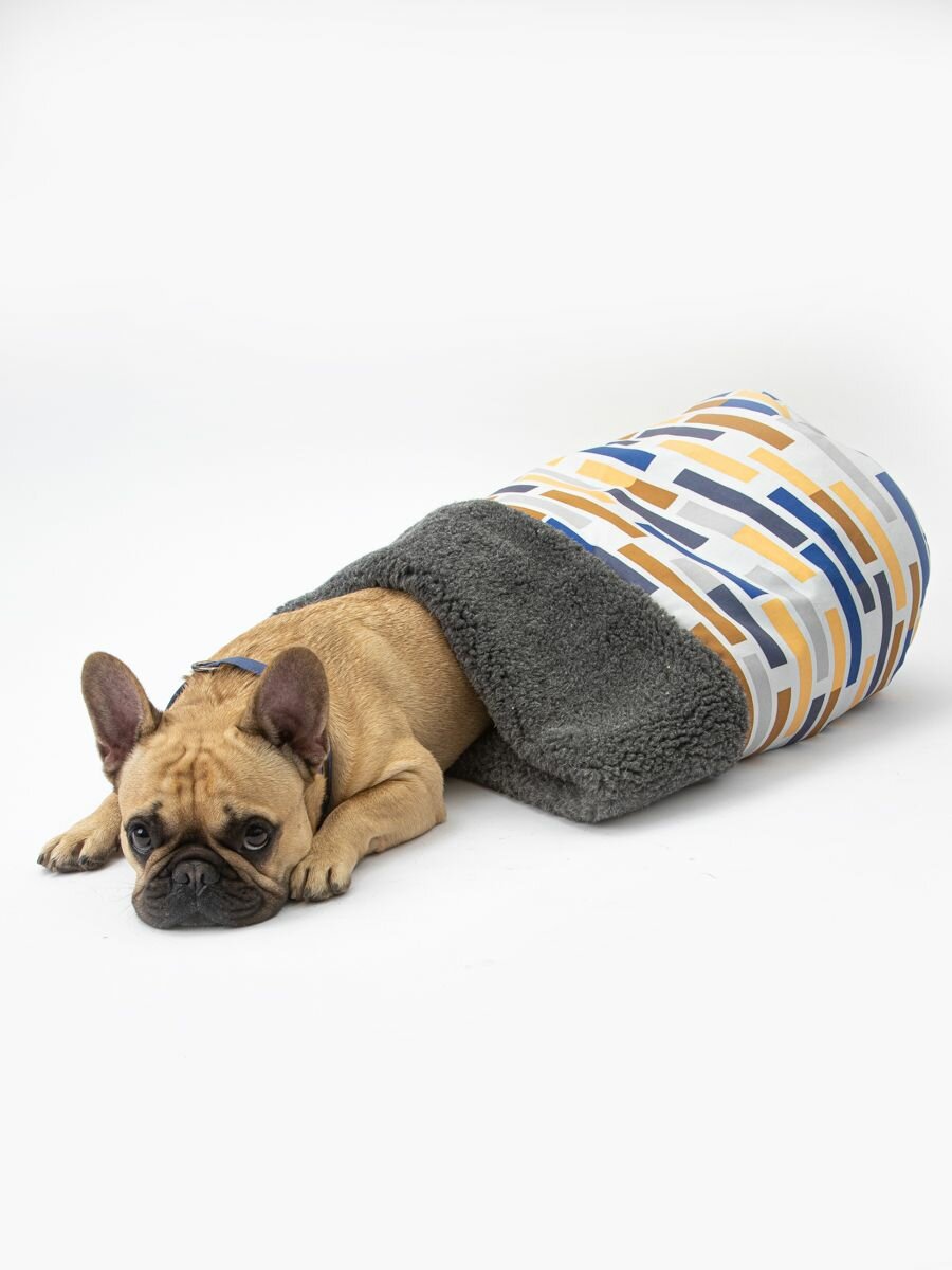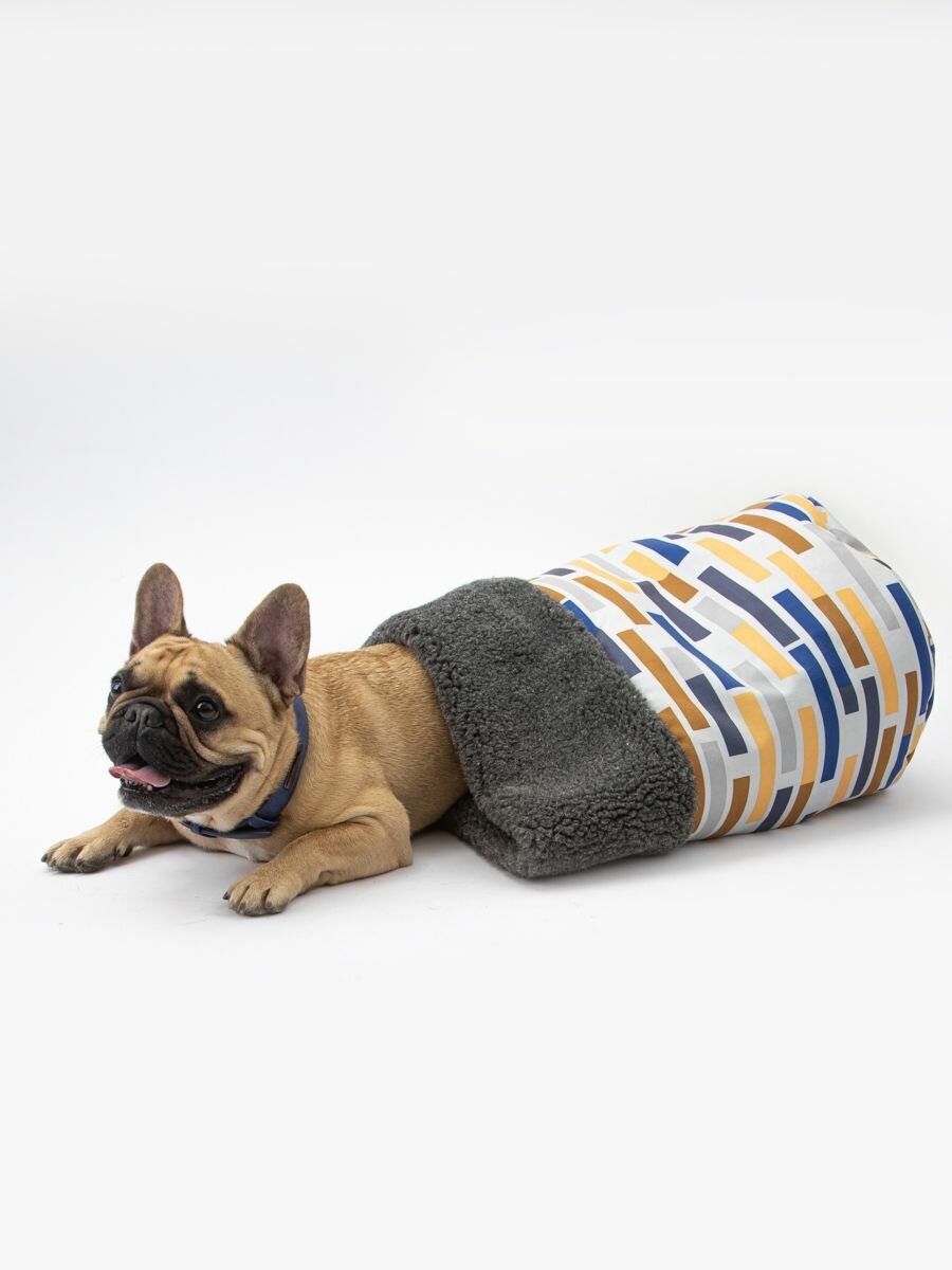 Домик для кошек и собак "Нора с овчиной", тоннель, Пятница, бежевая ткань и коричневый мех, 38*50*38 см