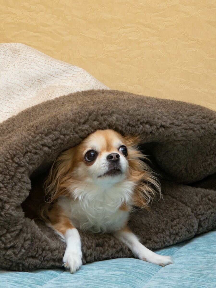 Домик для кошек и собак "Нора с овчиной", Пятница, 38*50*38 см, мебельная ткань с принтом и коричневый мех