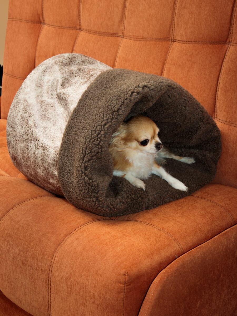 СохранитьДомик для кошек и собак "Нора с овчиной", тоннель, Пятница, бежевая ткань и коричневый мех, 38*50*38 см интересное:
