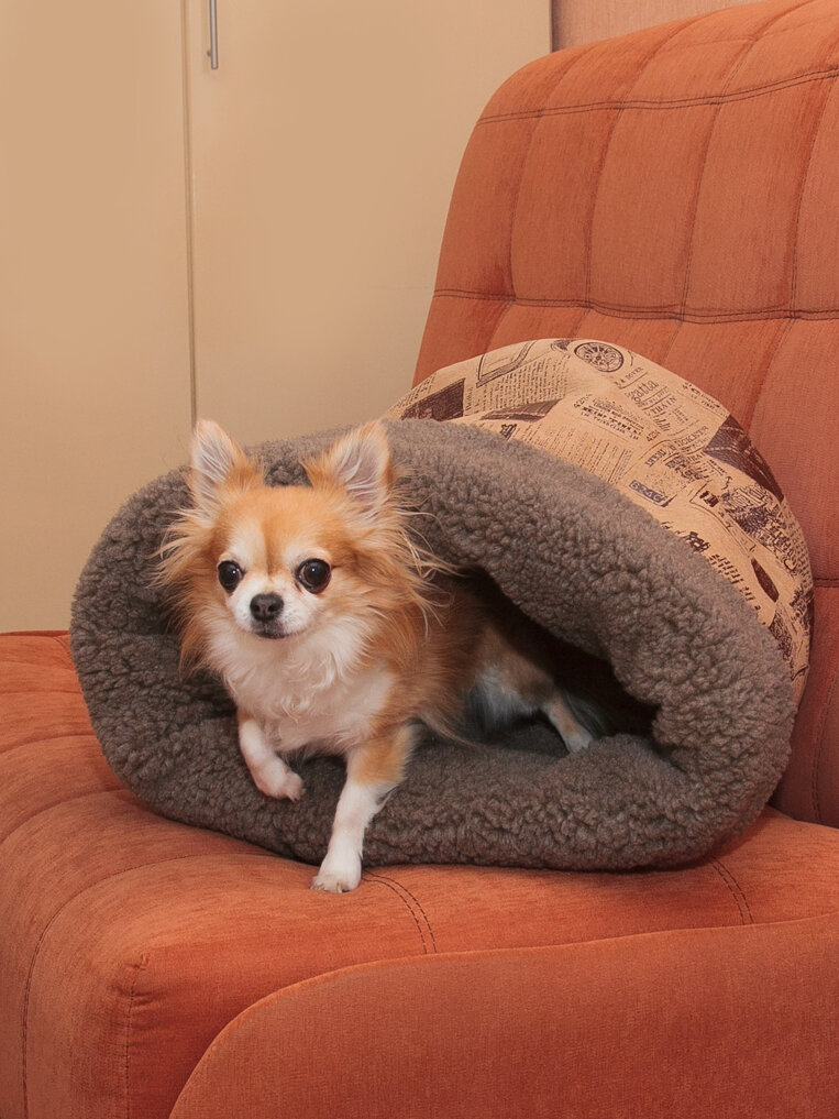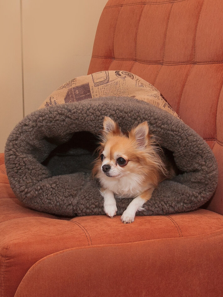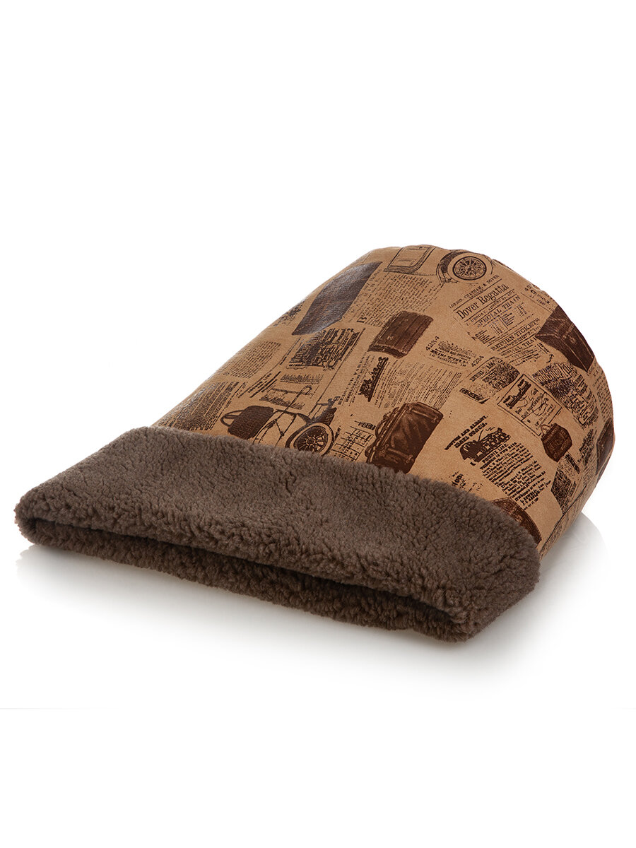 СохранитьДомик для кошек и собак "Нора с овчиной", Пятница, 38*50*38 см, мебельная ткань с принтом и коричневый мех интересное: