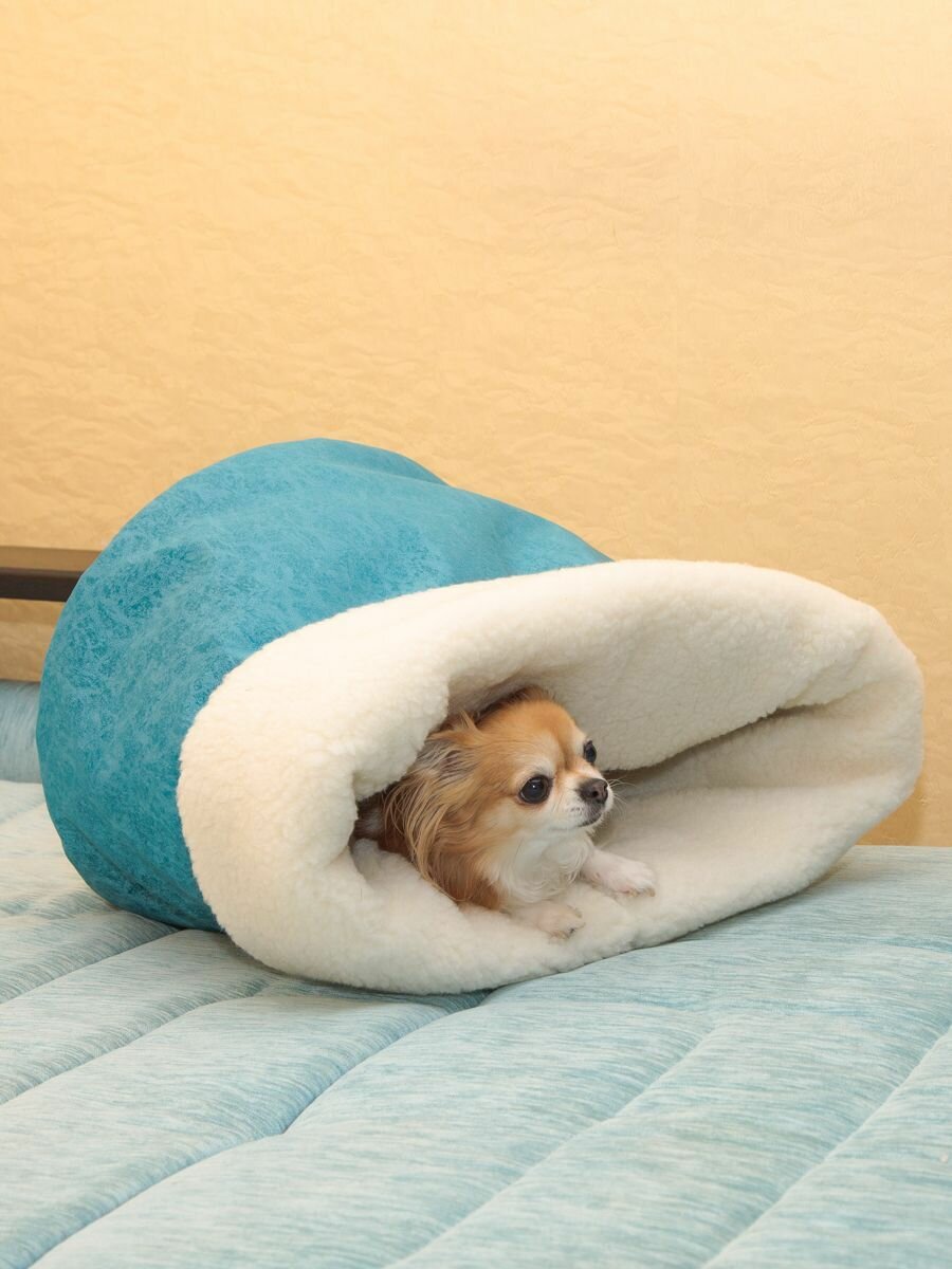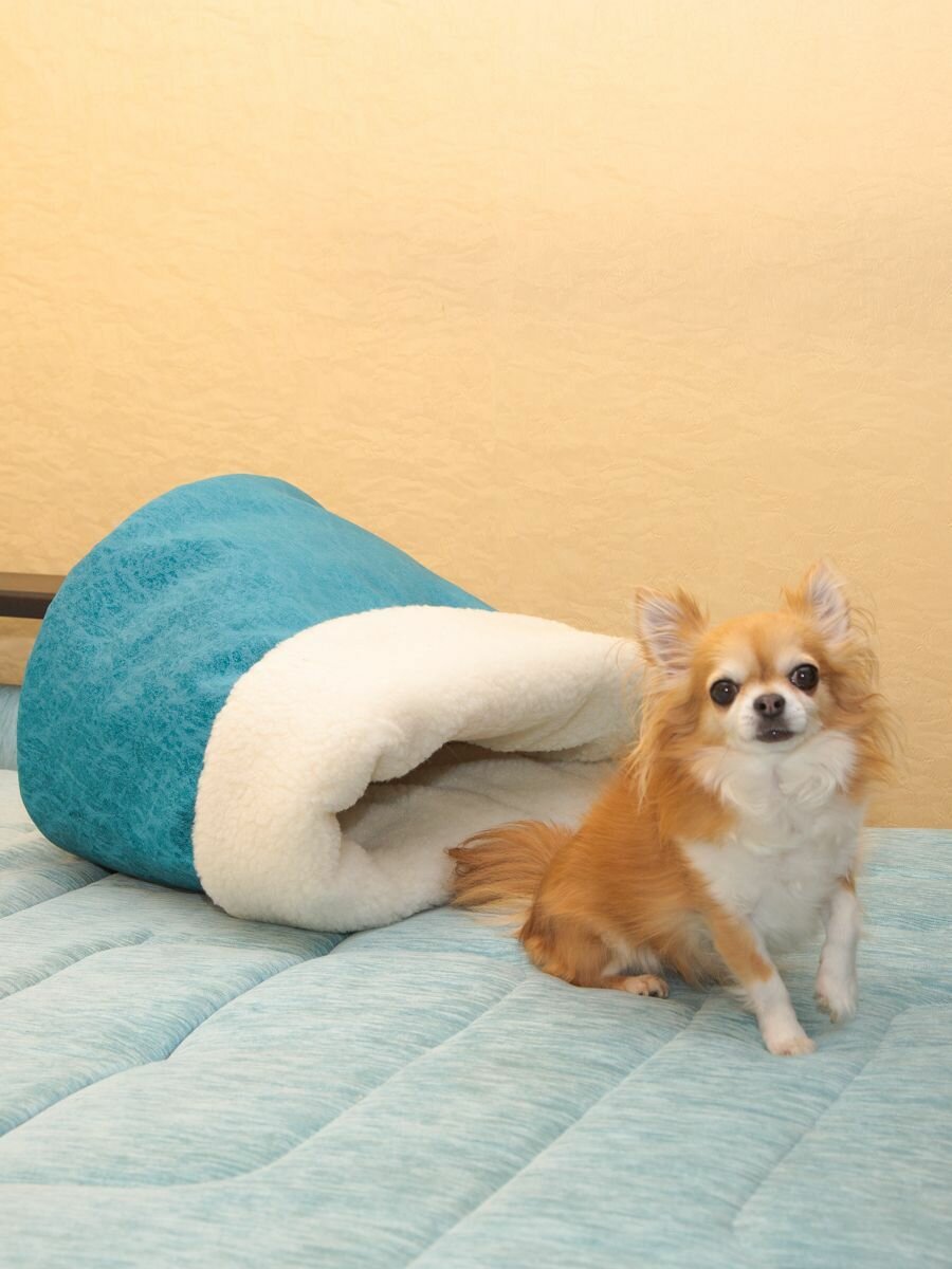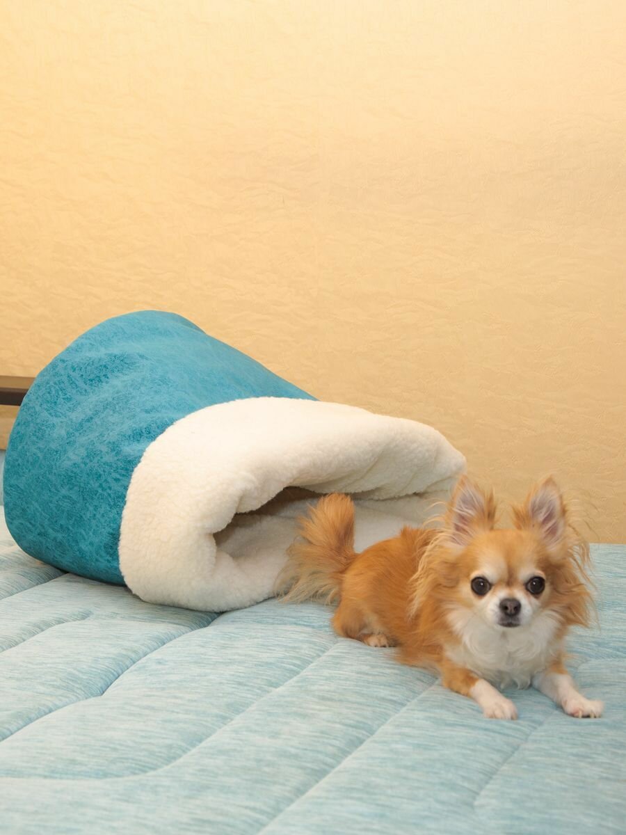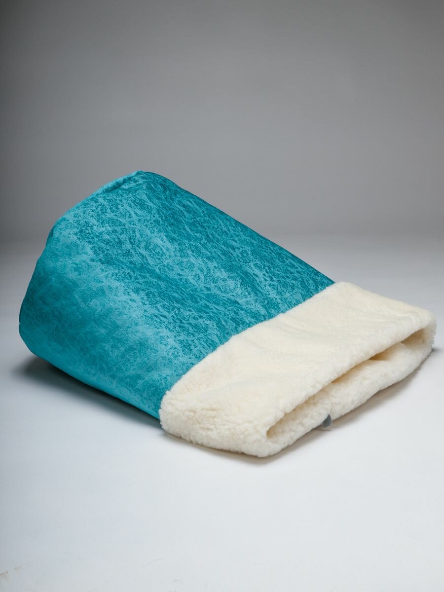 СохранитьЛежанка для кошек и собак "Нора с овчиной", Пятница. голубой велюр и молочный мех, 50*38*50 см, домик и тоннель интересное: