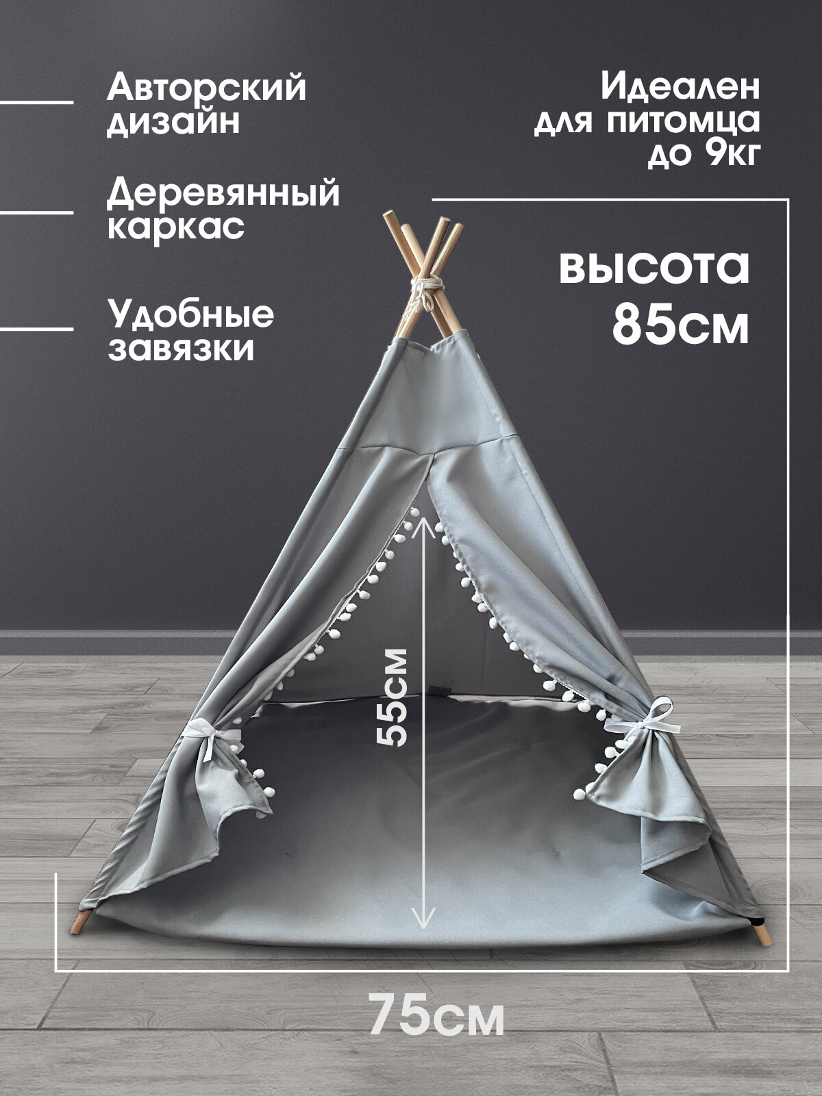 Домик для животных XXL. Вигвам-палатка для кошек и собак с лежанкой Серый интересное: