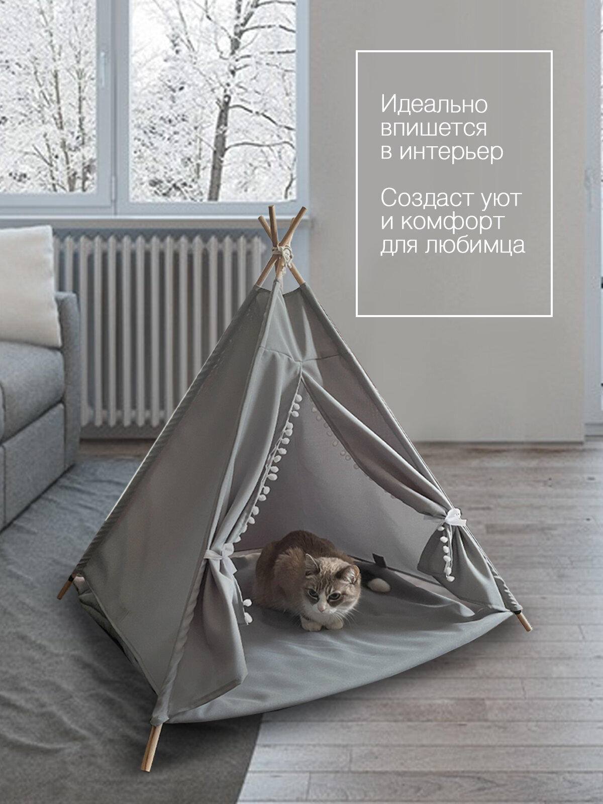 Купить Домик для животных XXL. Вигвам-палатка для кошек и собак с лежанкой Серый