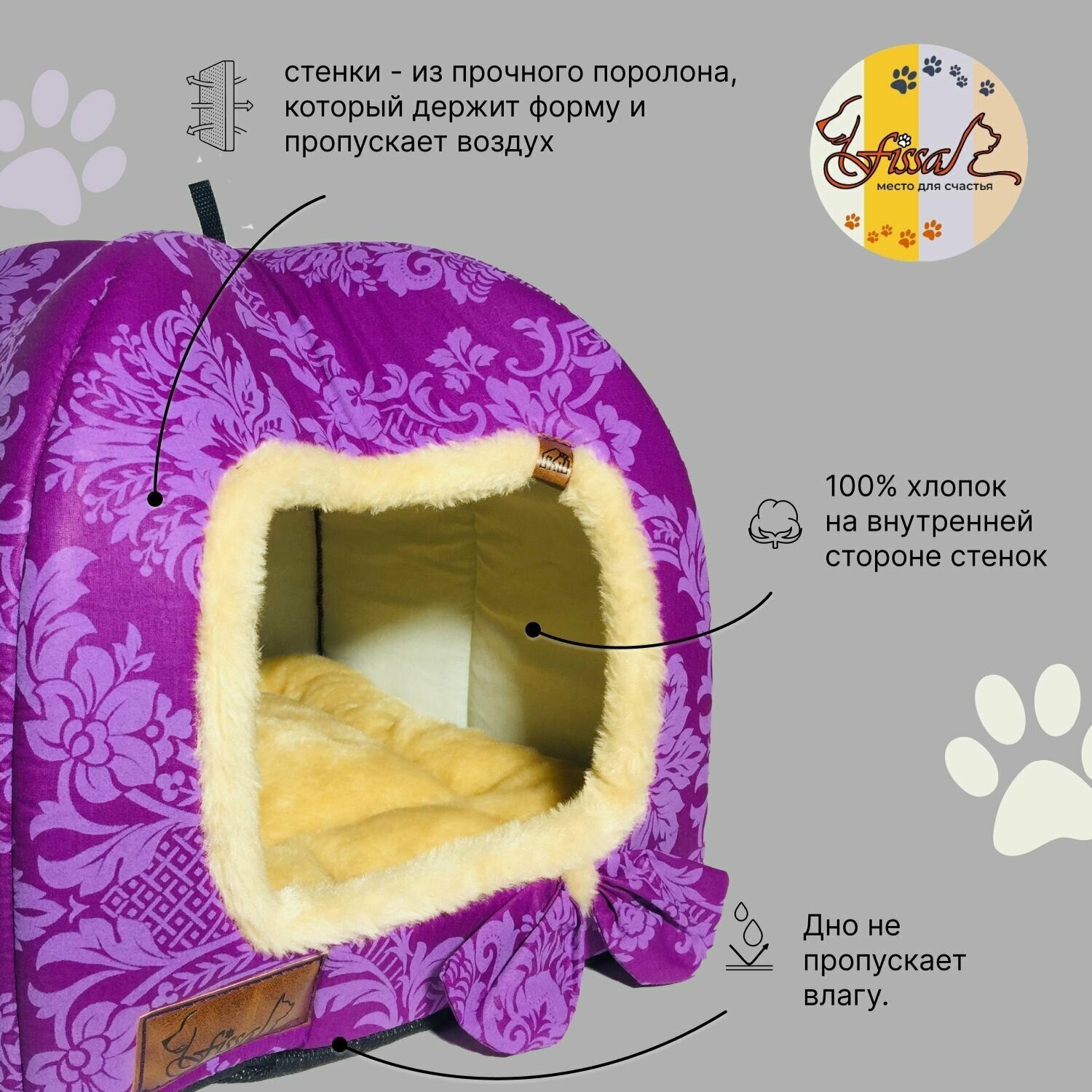 СохранитьДомик-ягодка для животных FISSA коллекция "Сапфир", домик для кошек и маленьких собачек большой, 40х40 см интересное: