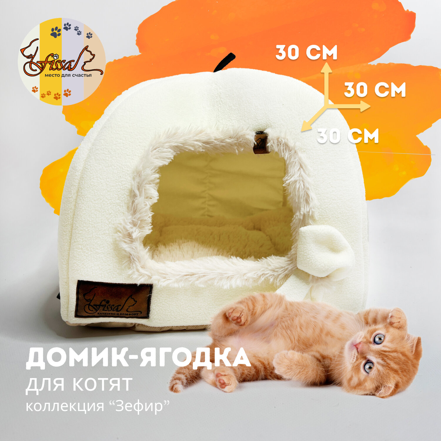 Домик-ягодка для котят и маленьких пород собачек FISSA маленький, коллекция "Персик", 30х30 см.