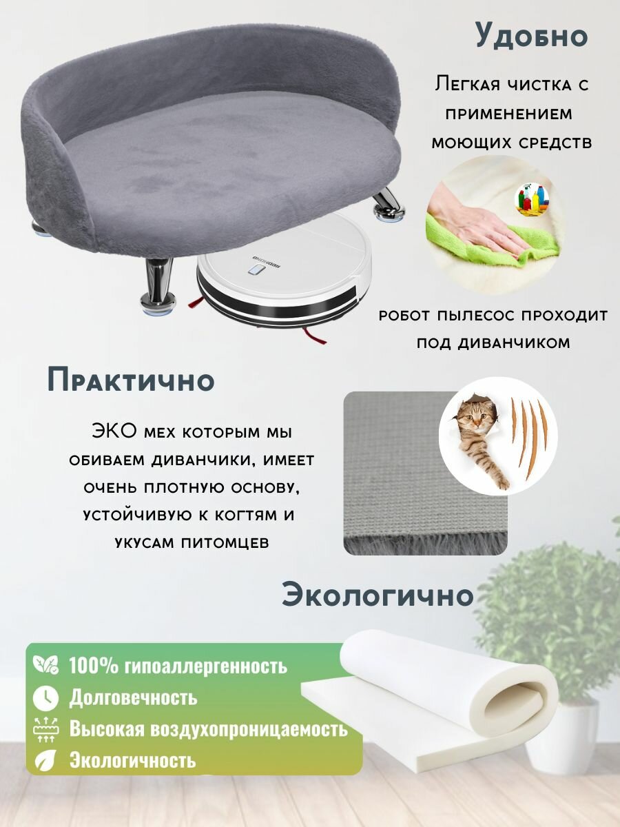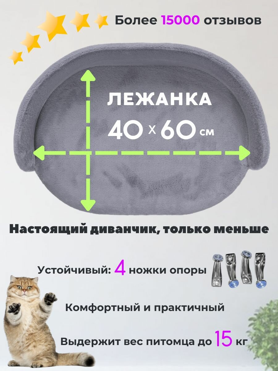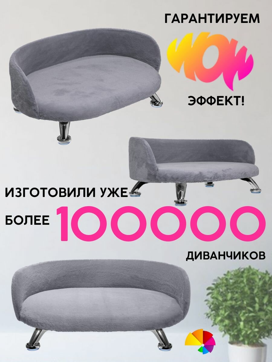 Лежанка, когтеточка, диван для кошек и собак мелких и средних пород, Chauzi Лея-графит на металлических ножках с бортиком 60*40 см, Темно-Серый