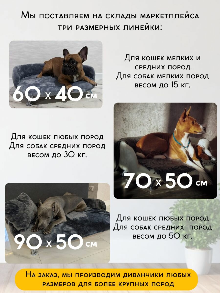 Лежанка для кошек и собак "Луи" диван из Premium мебельной ткани микровелюр для мелких пород 60*40 см.