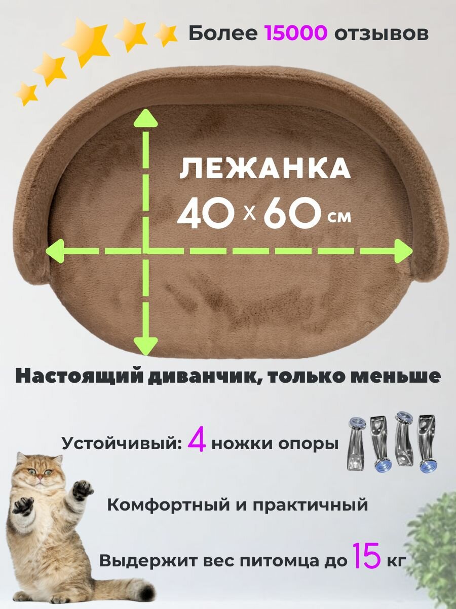 СохранитьЛежанка для кошек и собак мелких и средних пород Chauzi "Лео" из Premium ЭКО меха на ножках с бортиком 60*40 см, Светло-коричневый интересное: