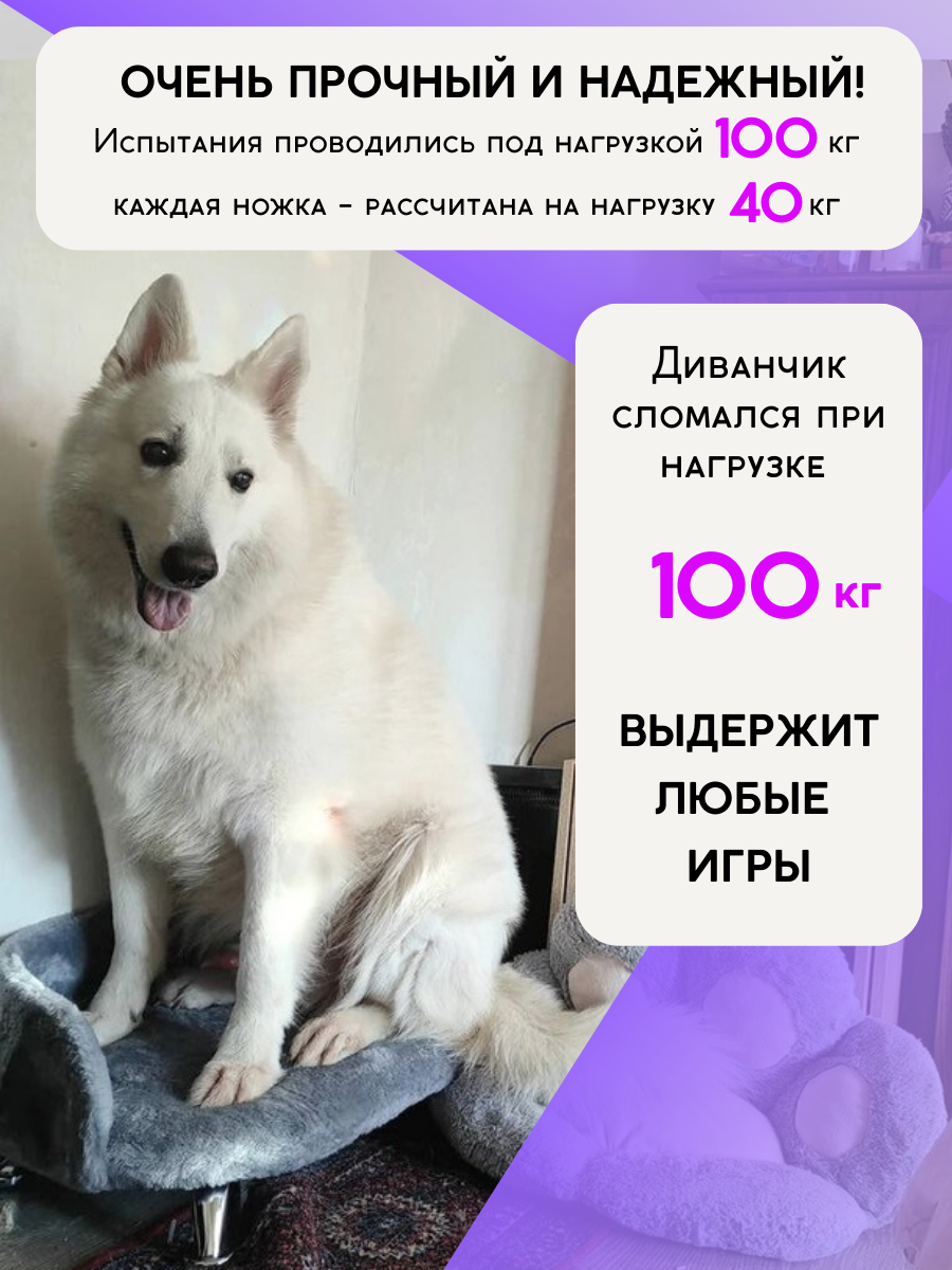 Лежанка диван для кошек и собак мелких и средних пород, диван "Белый" ковролин анти коготь на металлических ножках с бортиком 60*40 см