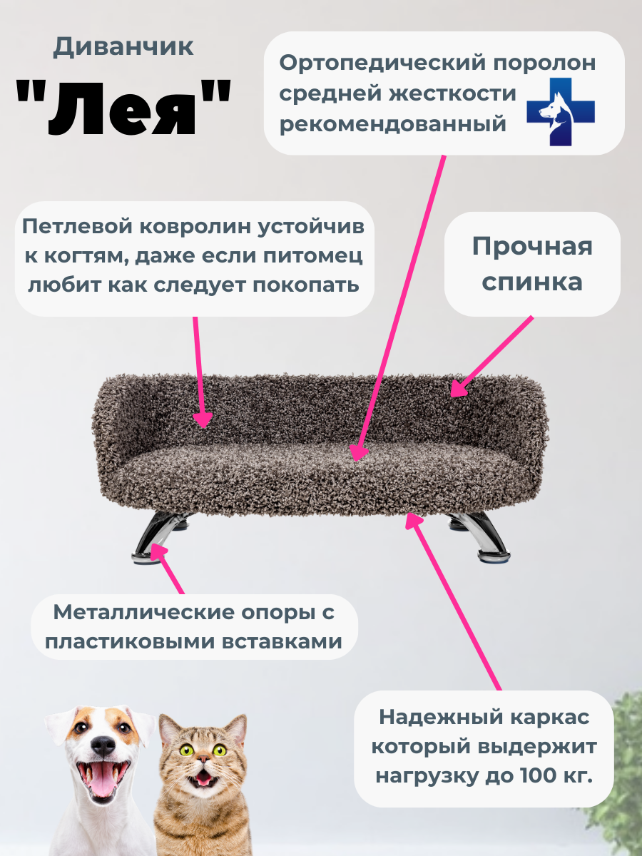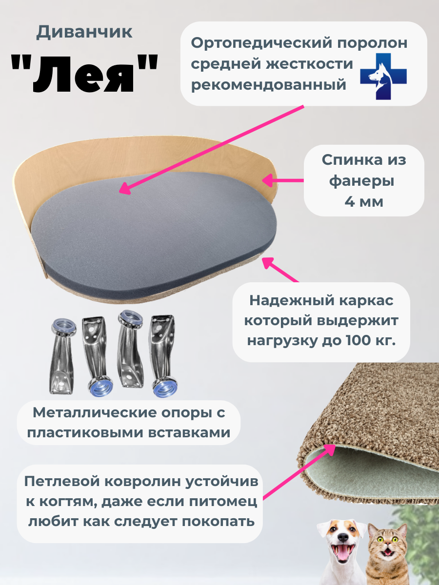 Лежанка для кошек и собак "Луи" диван из Premium мебельной ткани микровелюр для мелких пород 60*40 см.