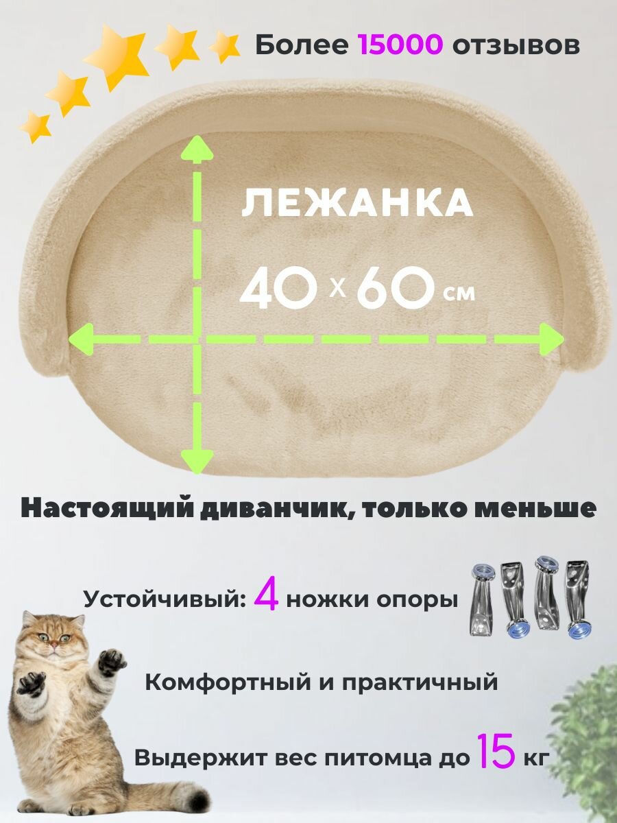 СохранитьЛежанка для кошек и собак мелких и средних пород, диван из Premium ЭКО меха на ножках с бортиком 60*40 см, Бежевый интересное: