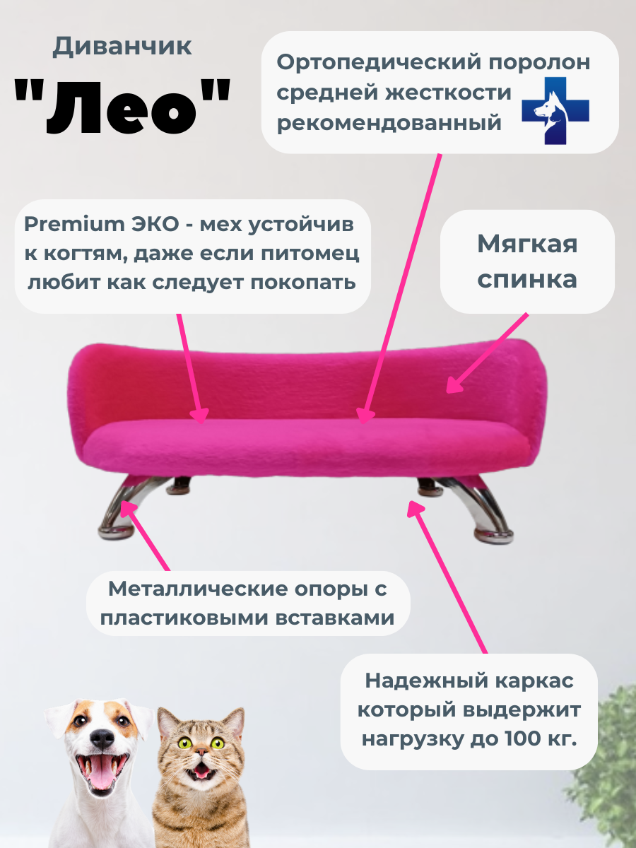 Лежанка для кошек и собак "Луи" диван из Premium мебельной ткани микровелюр для мелких пород 60*40 см.