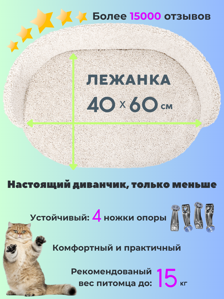 СохранитьЛежанка диван для кошек и собак мелких и средних пород, диван "Белый" ковролин анти коготь на металлических ножках с бортиком 60*40 см интересное: