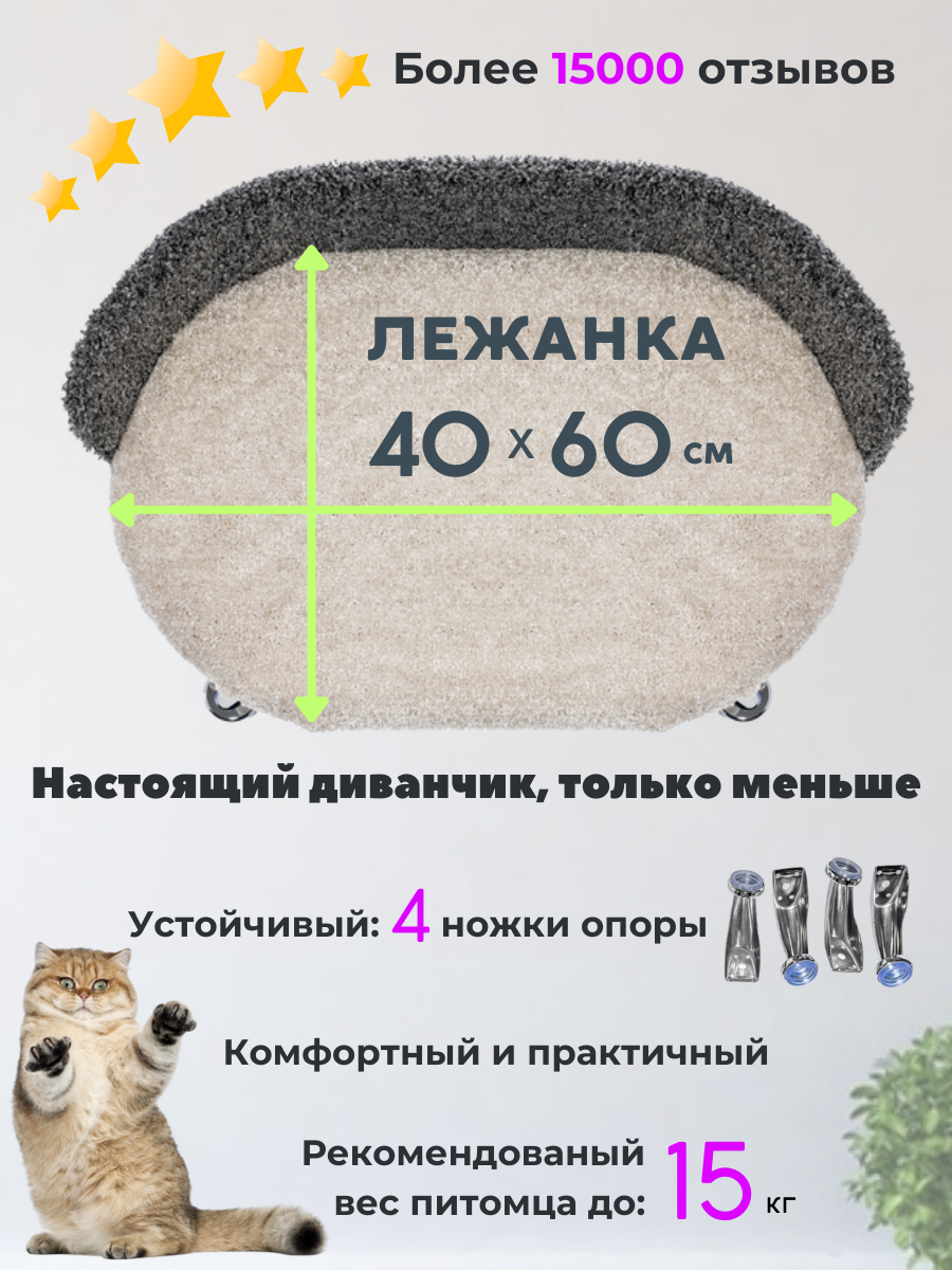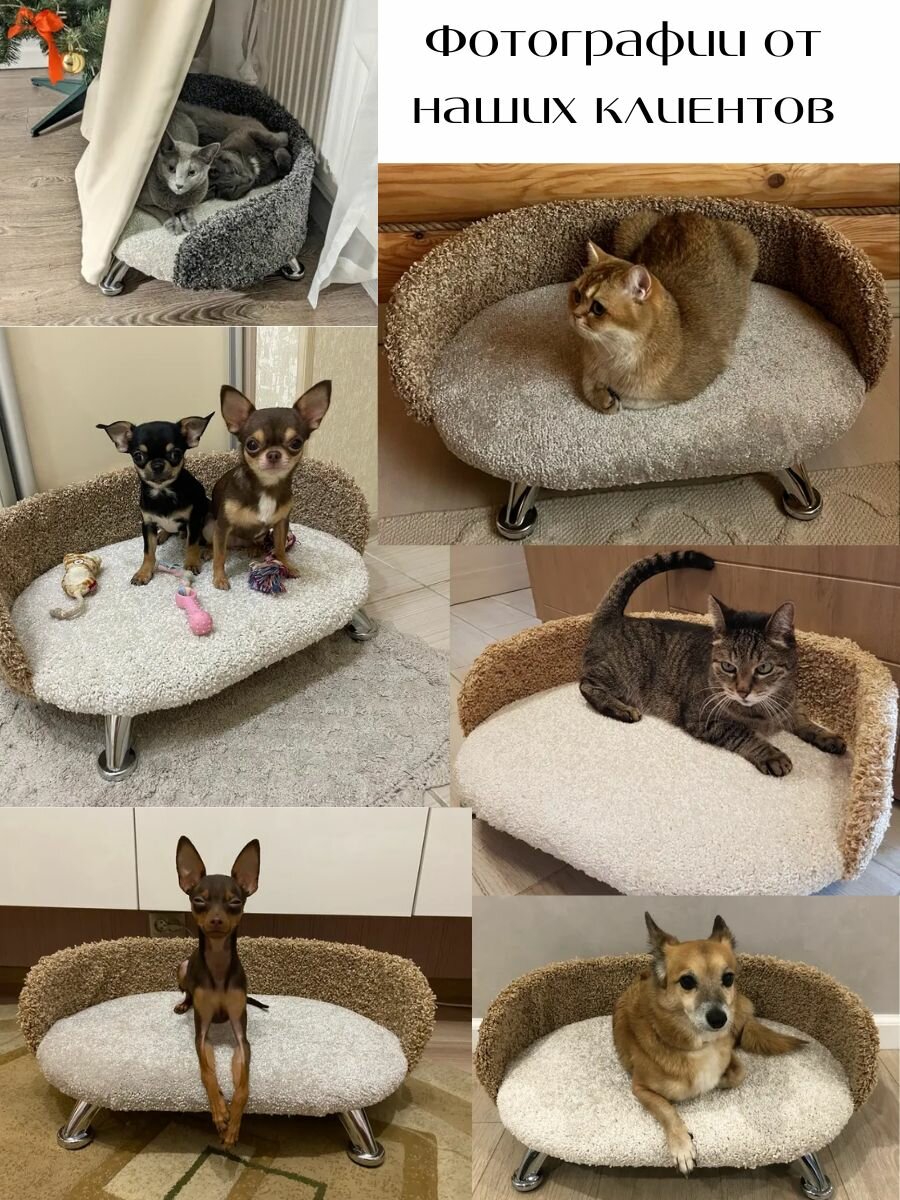 Лежанка диван для кошек и собак мелких и средних пород, диван "Белый" ковролин анти коготь на металлических ножках с бортиком 60*40 см
