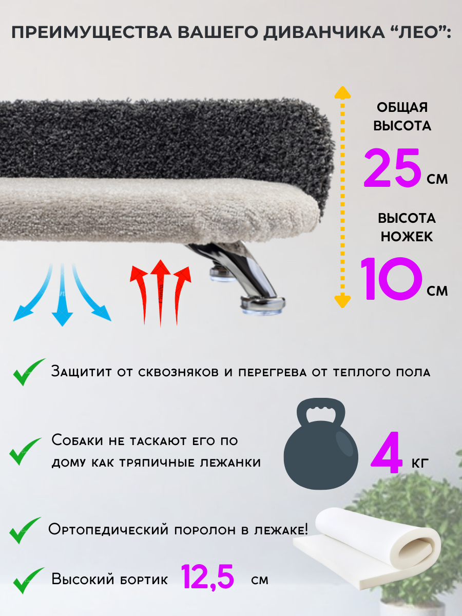 СохранитьЛежанка для кошек и собак мелких и средних пород Chauzi "Лео" из петлевого ковролина на ножках с бортиком 60*40 см, Графит-Белый интересное: