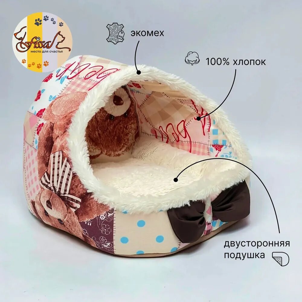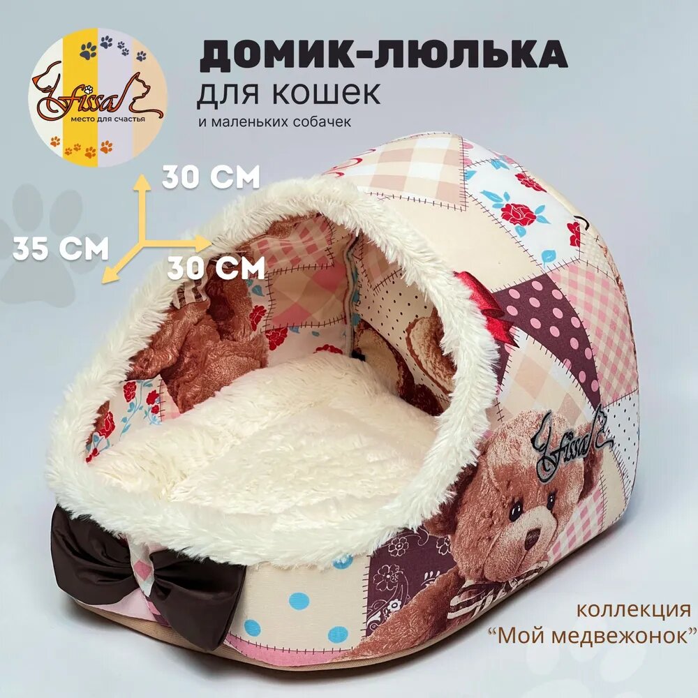 Купить Домик-люлька для животных FISSA, коллекция "Мой медвежонок", 35х30 см (лежанка для кошек и маленьких собачек)