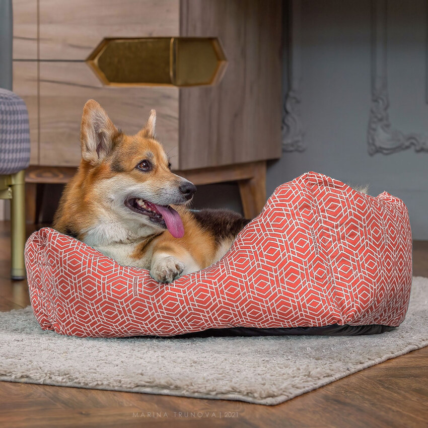 Лежанка пухлик для собак и кошек ZOOexpress Геометрия №4, 55х40х23 см, коралловый