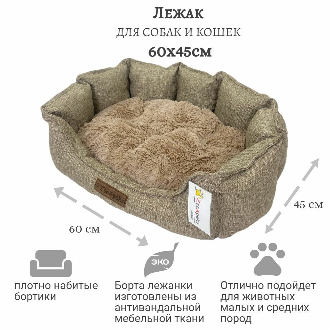 Лежанка для собак и кошек ZooApeks 60x45 лен интересное: