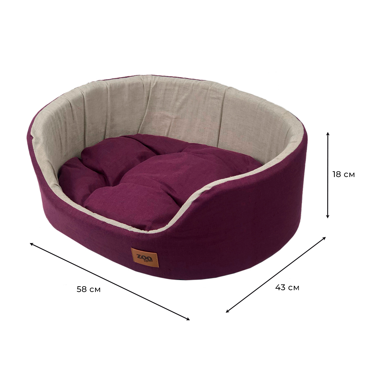 Лежанка для собак и кошек ZOOexpress Эколен №3, 53х38х18 см, баклажановый