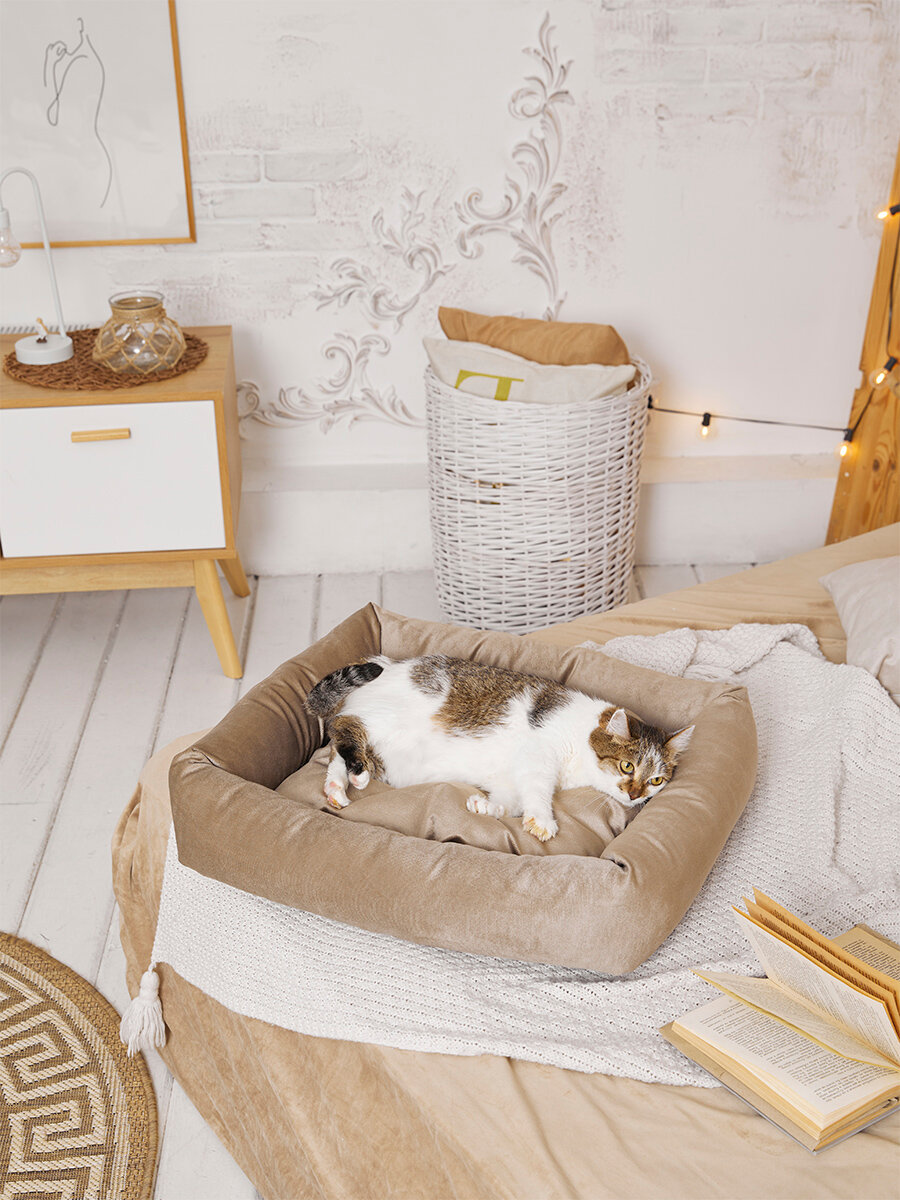 Лежанка для кошек и собак 60х70. цв. латте интересное: