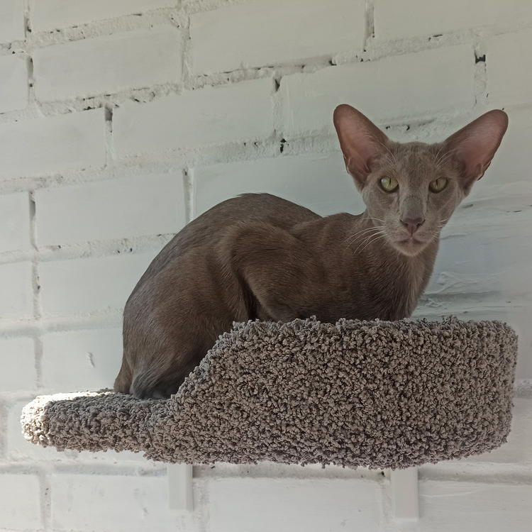 Лежанка для кошек, Моя Котя, настенная, с правым бортиком, светло-серая, ковролин, 50х30х10 см