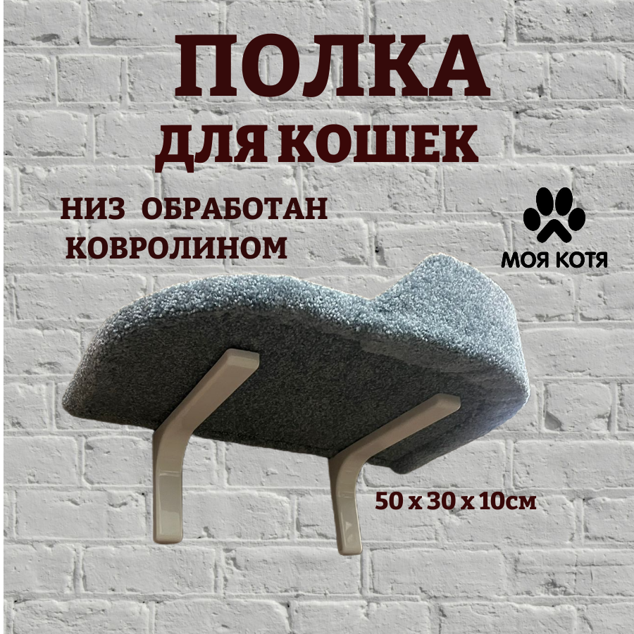Лежанка для кошек, Моя Котя, настенная, с правым бортиком, светло-серая, ковролин, 50х30х10 см