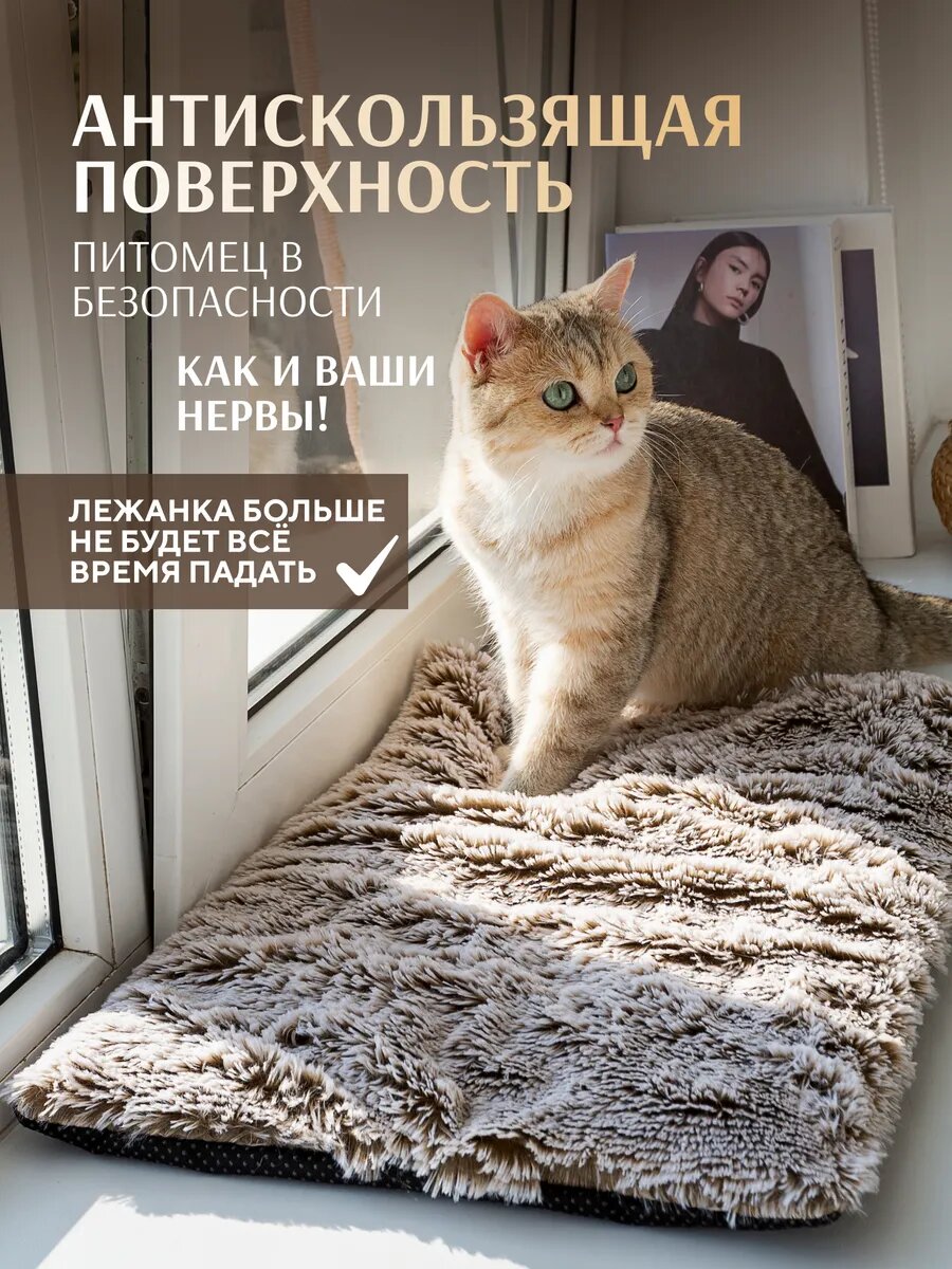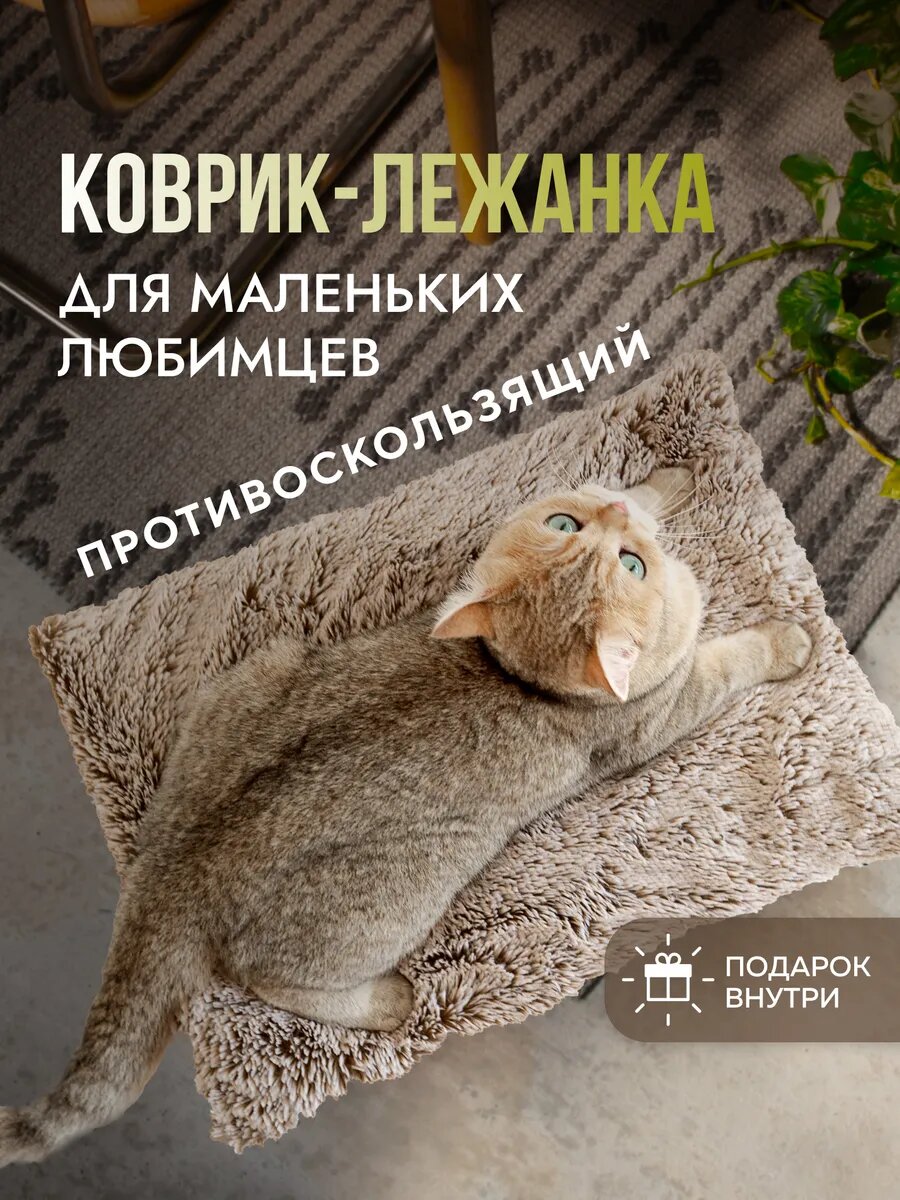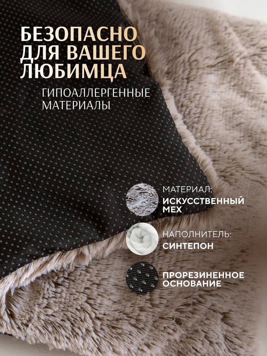 Лежанка для животных "С ХВОСТИКОМ", бежевая, антискользящая, мех, 35см x 48см интересное: