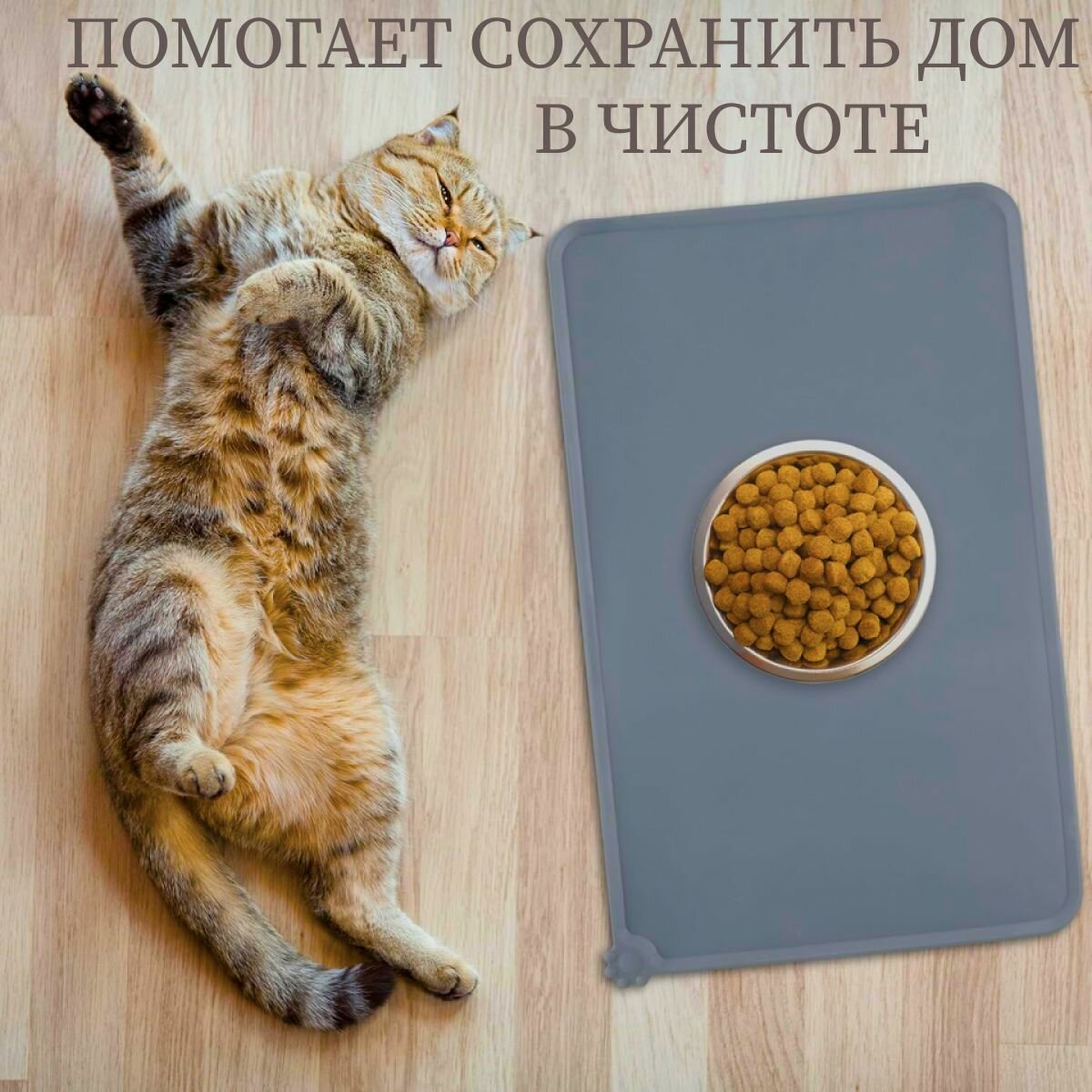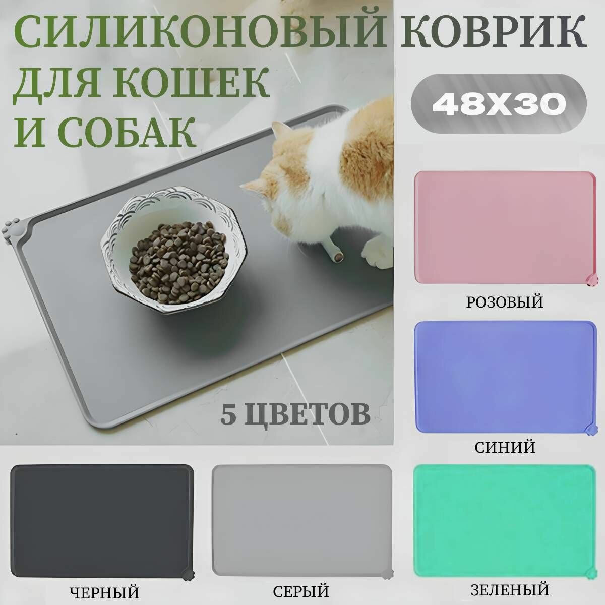 Kоврик силикoновый под миcку для кошки и собаки серый 48x30 см интересное: