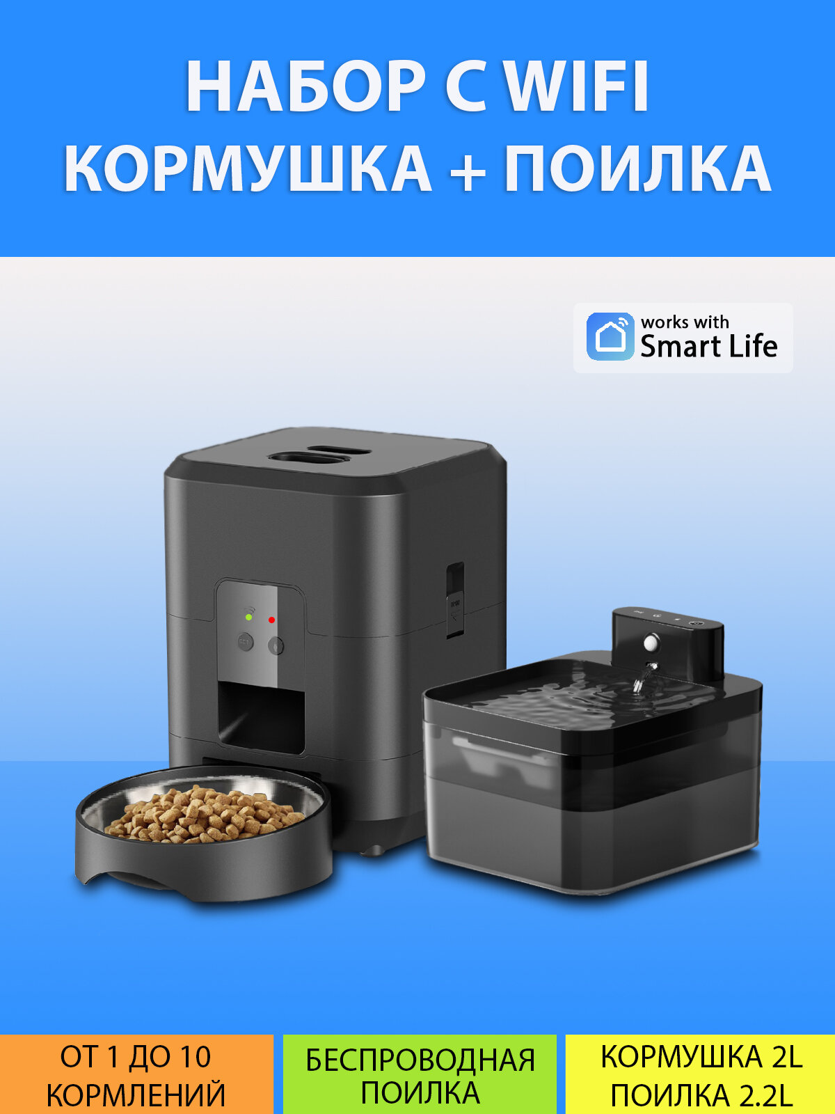 Купить Набор для кошек и собак - автокормушка c WiFi и беспроводная автопоилка, 2L+2L, до 7 дней запаса еды и воды MY PETS GADGETS