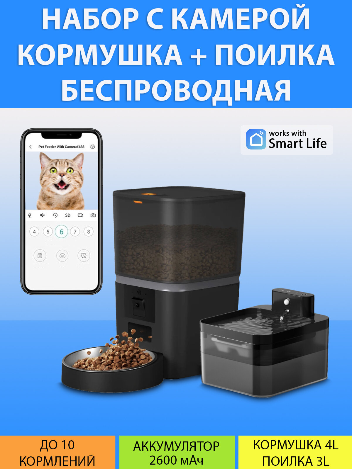 Набор для кошек и собак - автокормушка c камерой и беспроводная автопоилка, 4L+3L, до 20 дней запаса еды от MY PETS GADGETS