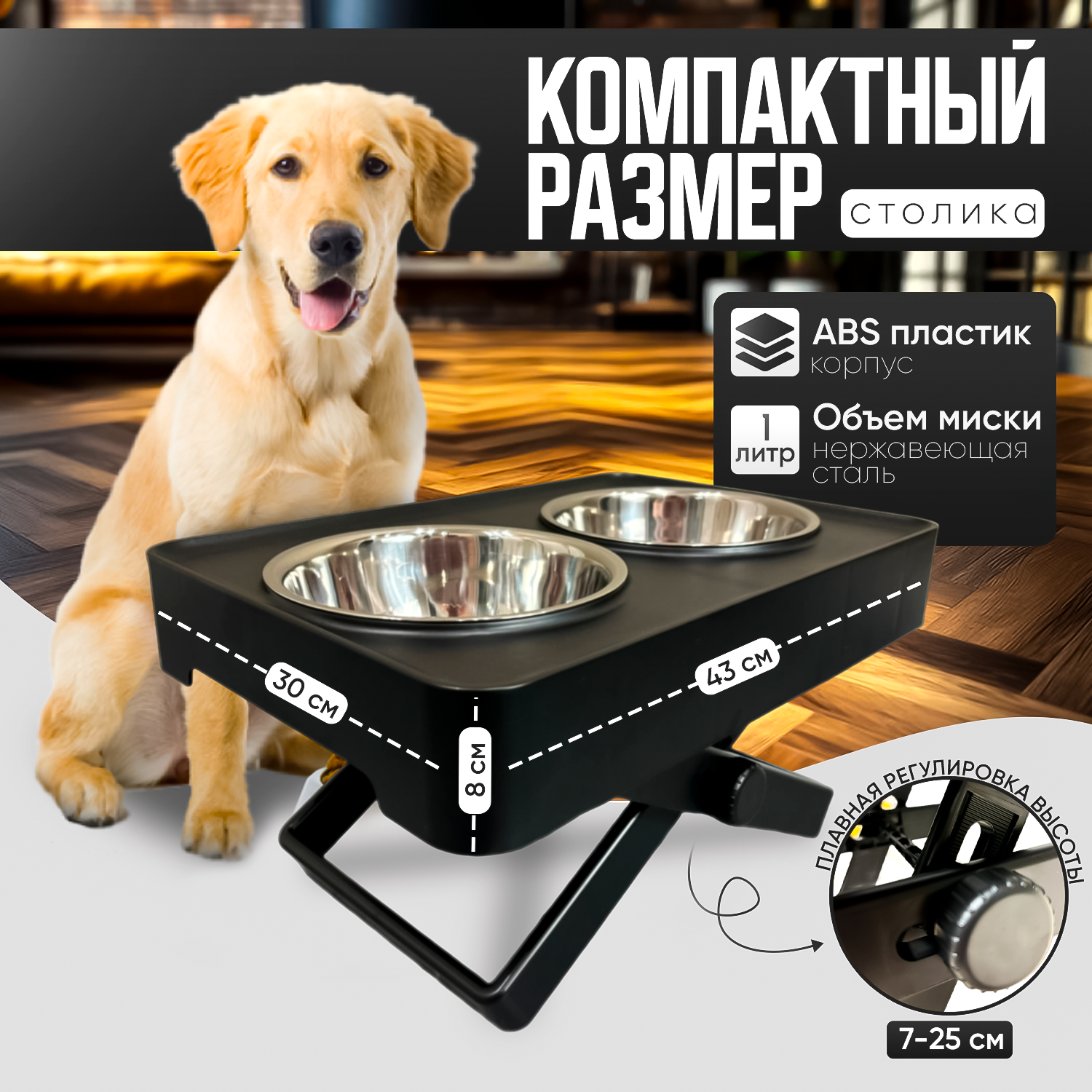 Миска для собак средних/крупных пород на подставке /с регулировкой высоты / черный интересное: