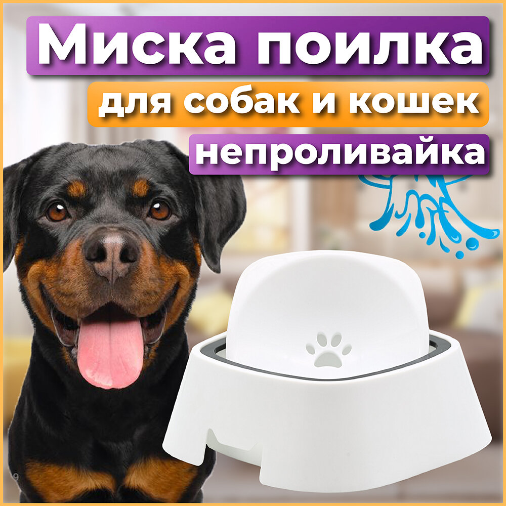Купить Миска поилка для кошек и собак непроливайка, прочный ABS пластик, белая, от брызг на полу, объем 1.5 литра