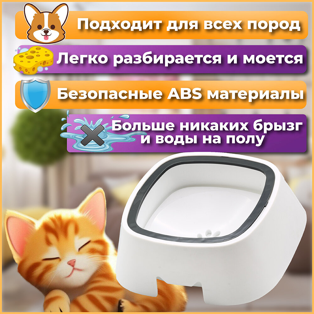 Миска поилка для кошек и собак непроливайка, прочный ABS пластик, белая, от брызг на полу, объем 1.5 литра интересное: