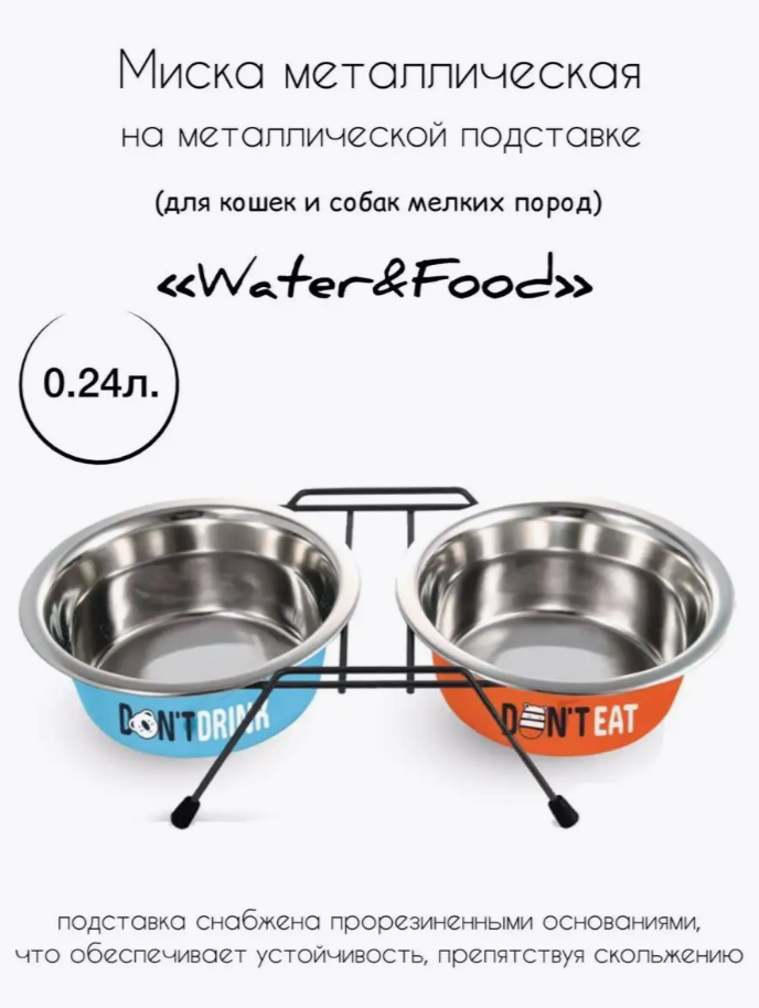 Triol Миска металлическая на подставке для кошек и собак "Water&Food", 2х240 мл интересное: