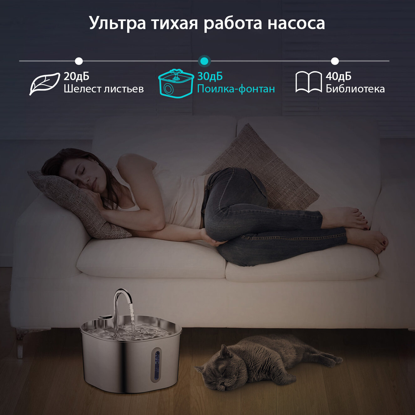 Купить Автоматическая поилка из нержавеющей стали 2,2 литра для кошек. Поилка малая металлическая для кошек от MY PET`S GADGETS