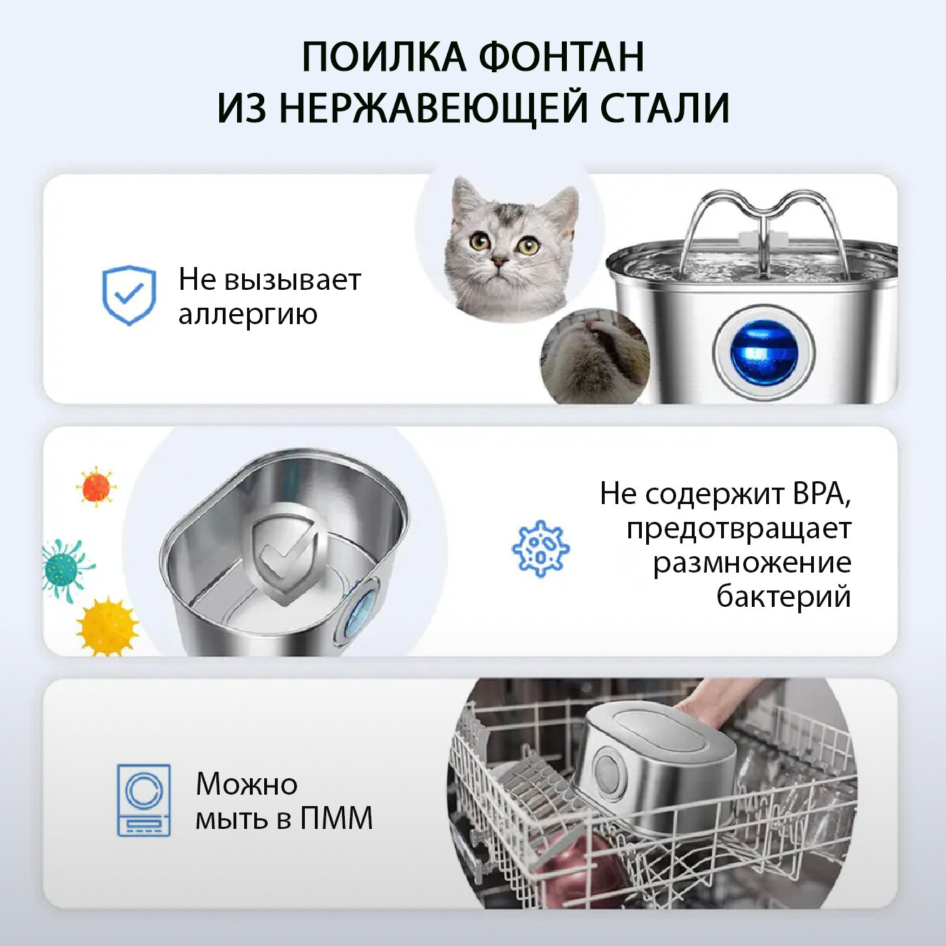 Автоматическая поилка из нержавеющей стали 2,2 литра для кошек. Поилка малая металлическая для кошек от MY PET`S GADGETS