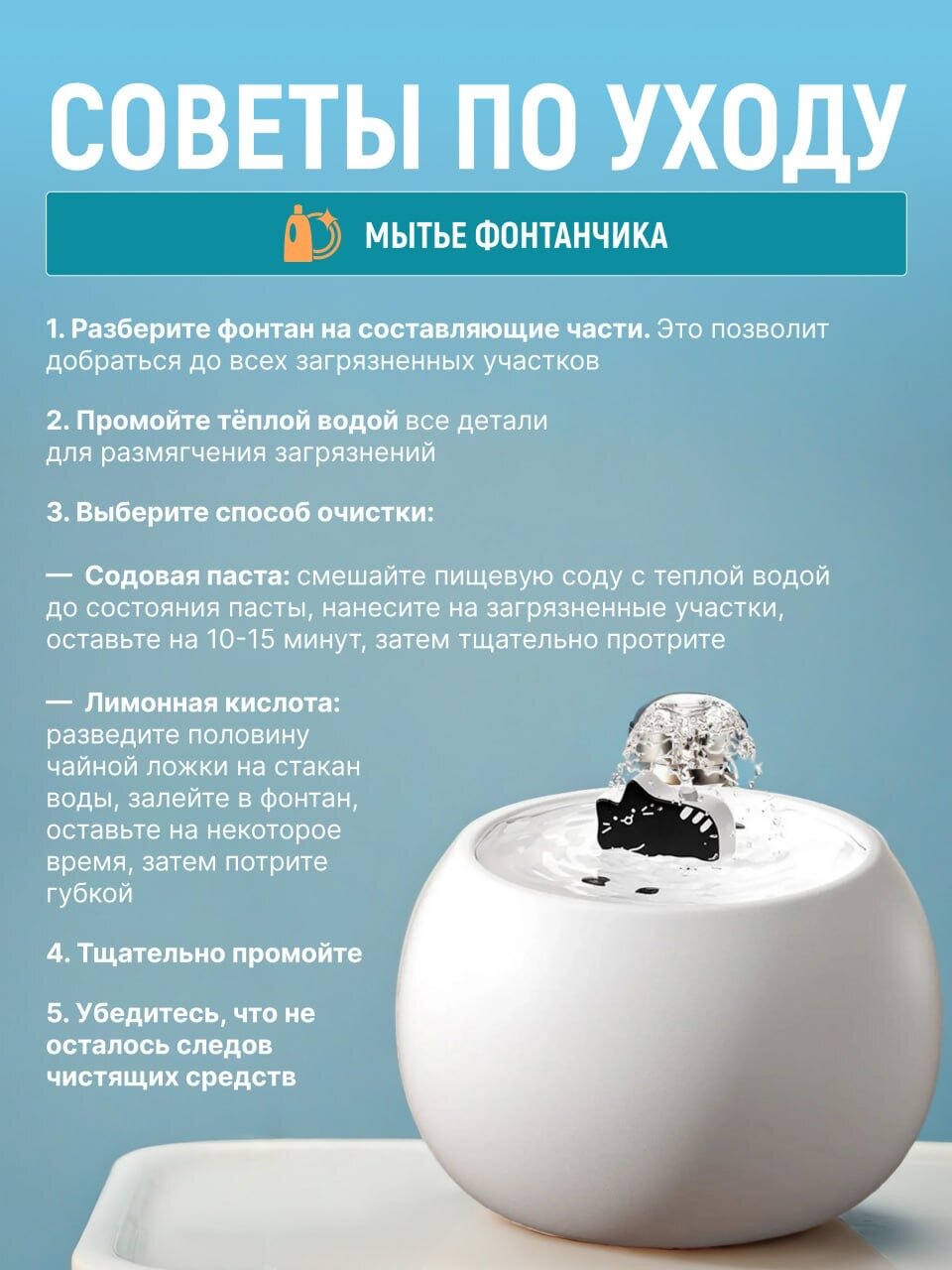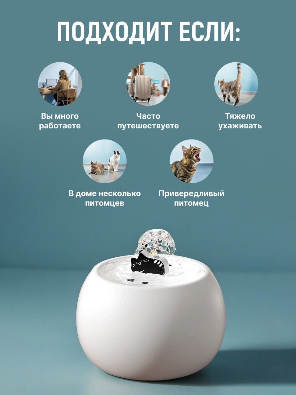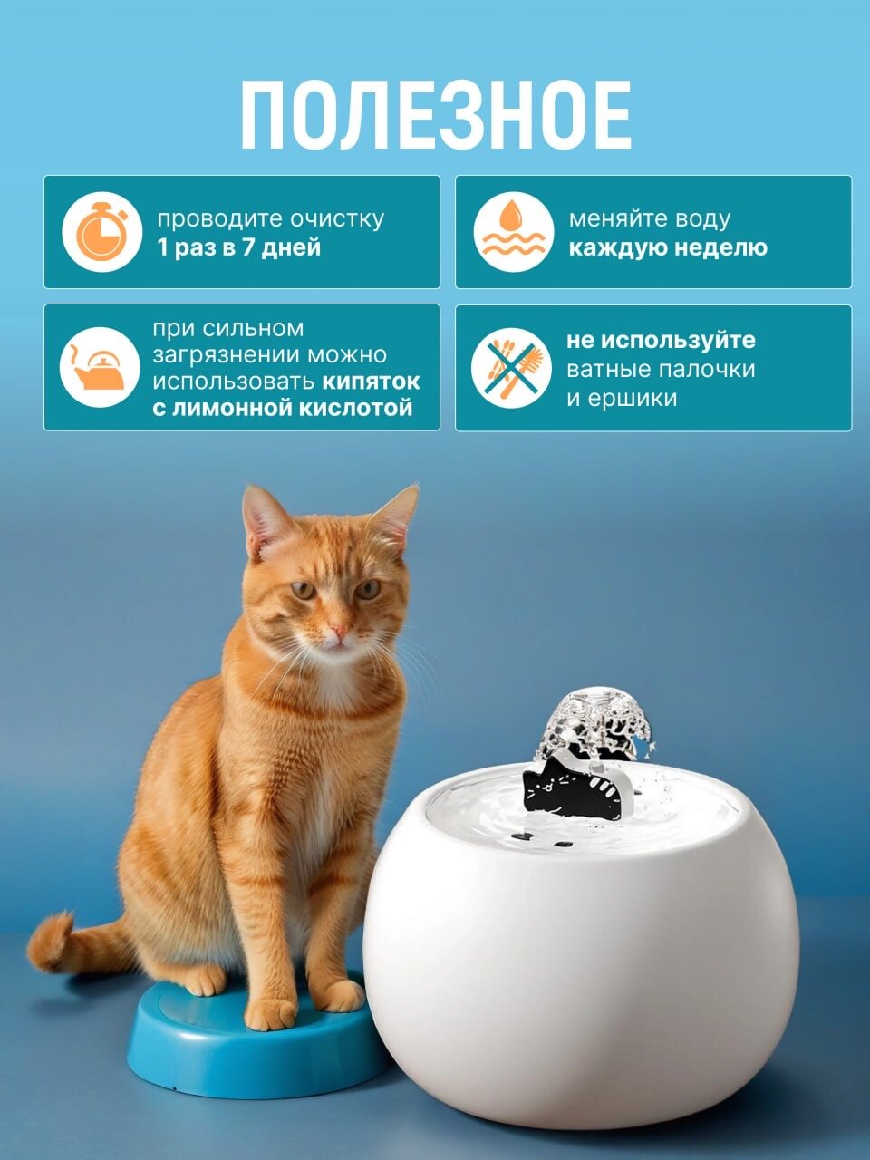 Автопоилка для кошек, фонтан питьевой, керамика, бесшумный, 1.5 л интересное: