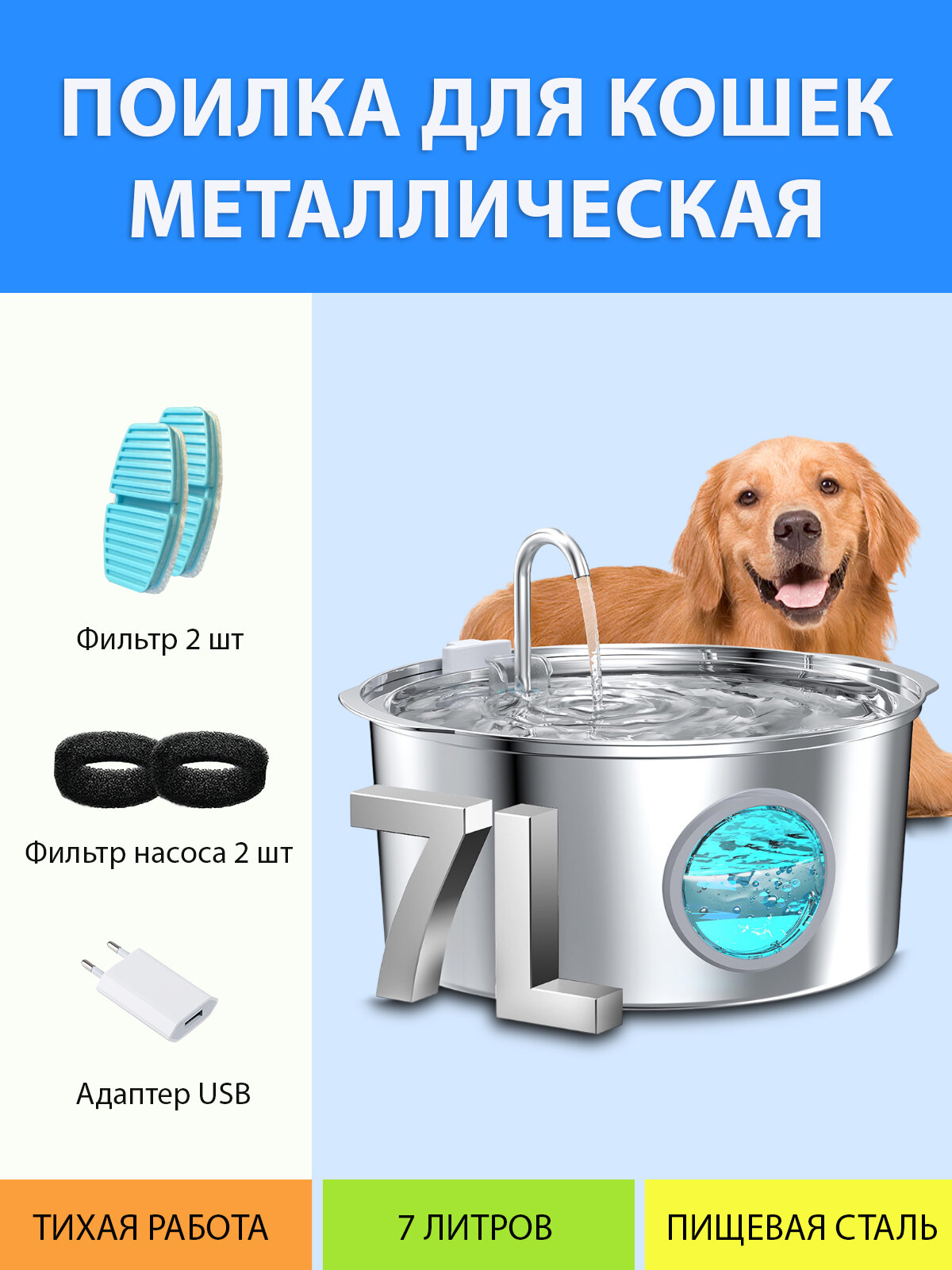 Ниже Вы можете прочитать отзывы на Поилка металлическая 7 литров для собак, большая, напольная. Поилка фонтан из нержавеющей стали, сетевая (USB) MY PET`S GADGETS, ознакомится с подробными характеристиками, посмотреть интересные обзоры и фотографии на Поилка металлическая 7 литров для собак, большая, напольная. Поилка фонтан из нержавеющей стали, сетевая (USB) MY PET`S GADGETS.