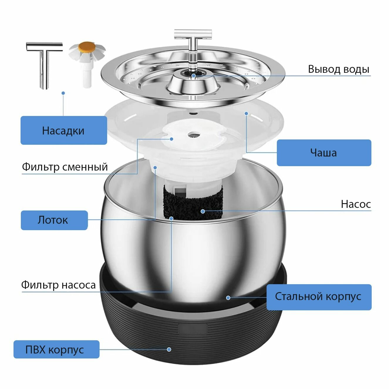 СохранитьПоилка металлическая 3 литра для кошек. Поилка фонтан из нержавеющей стали и ПВХ (Черный цвет) MY PET`S GADGETS интересное: