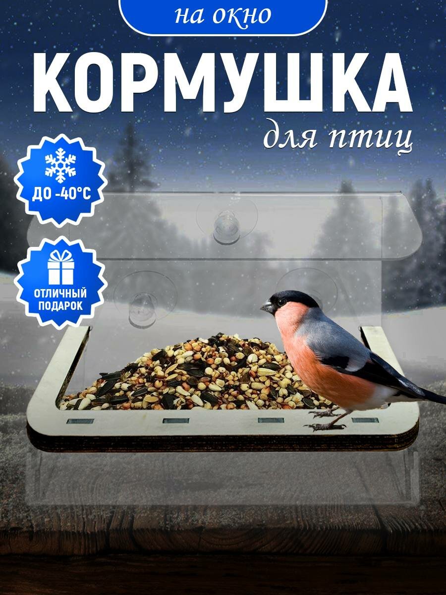 Купить Кормушка для птиц, оргстекло/пластик, 15x6x16 см, оконное крепление