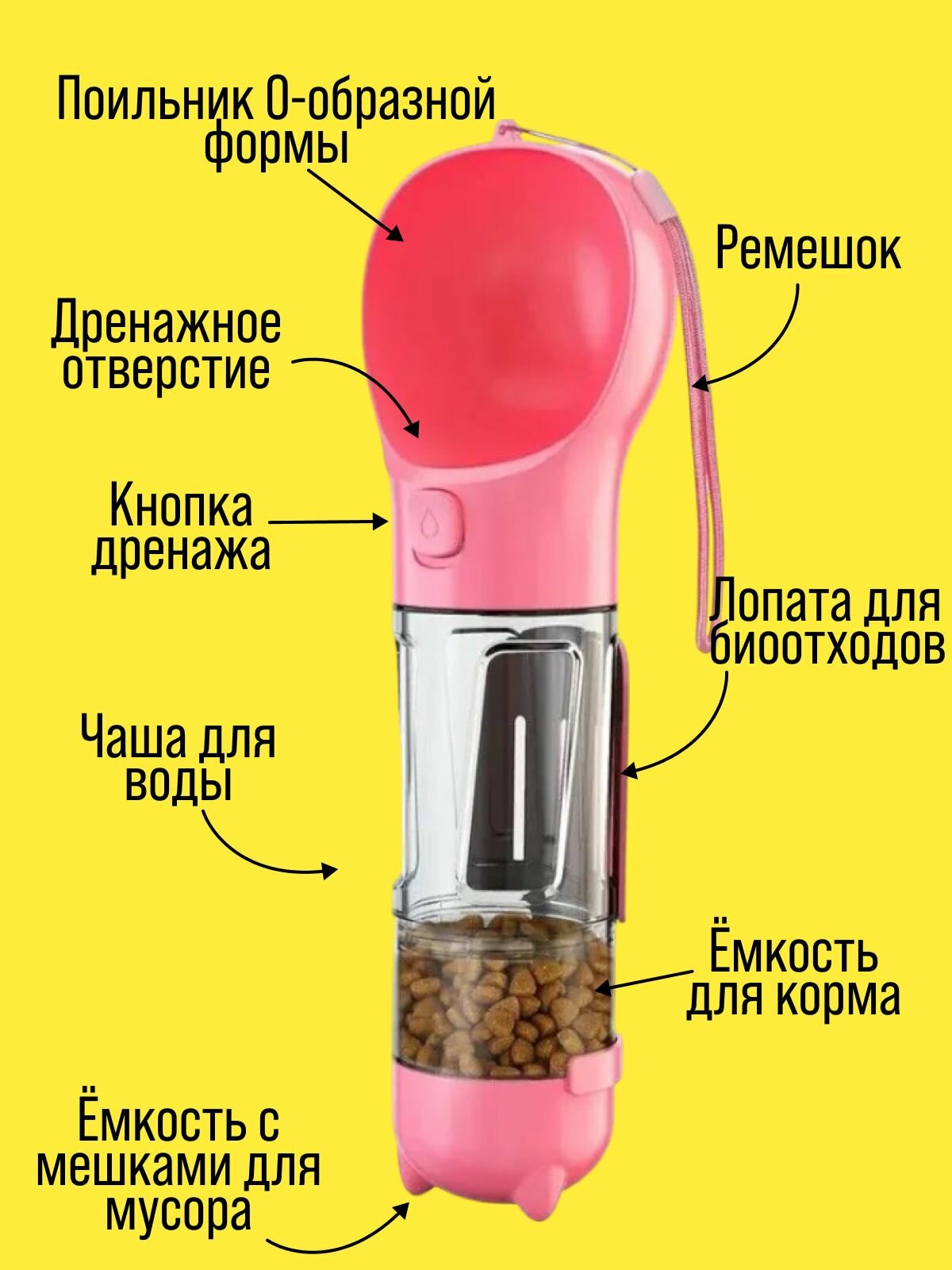 Многофункциональная дорожная кормушка поильник для кошек и собак розовая интересное: