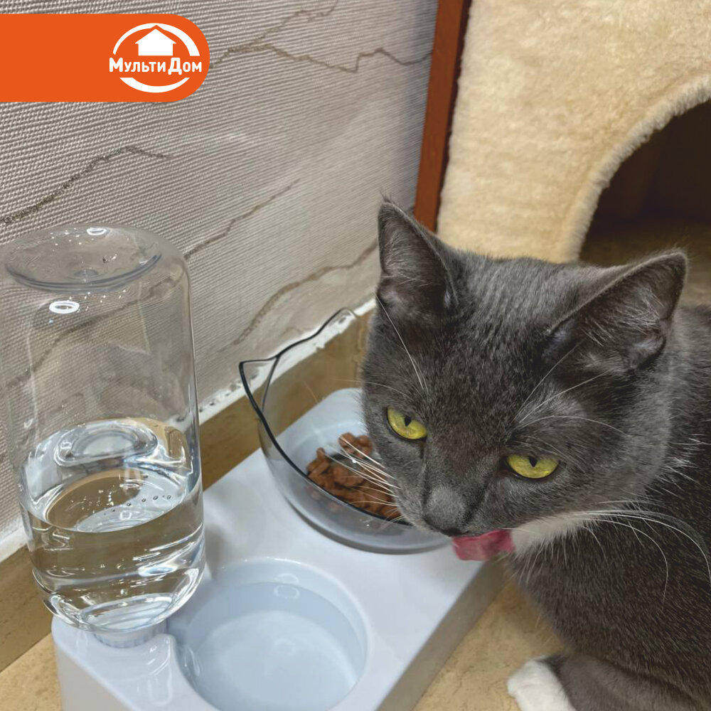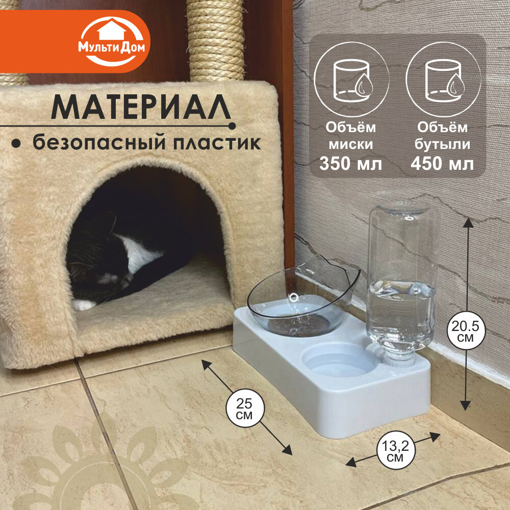 Миска для кошек с автопоилкой на подставке, пластик, белая, 350 мл интересное: