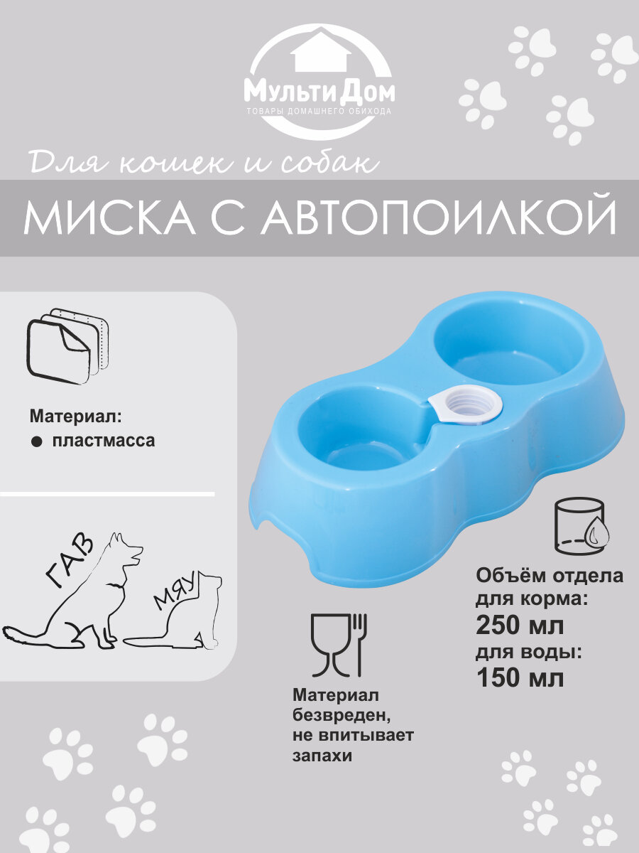 Миска для домашних животных с автопоилкой. Размер: 26х15х6 см, объемы 150 и 250мл интересное: